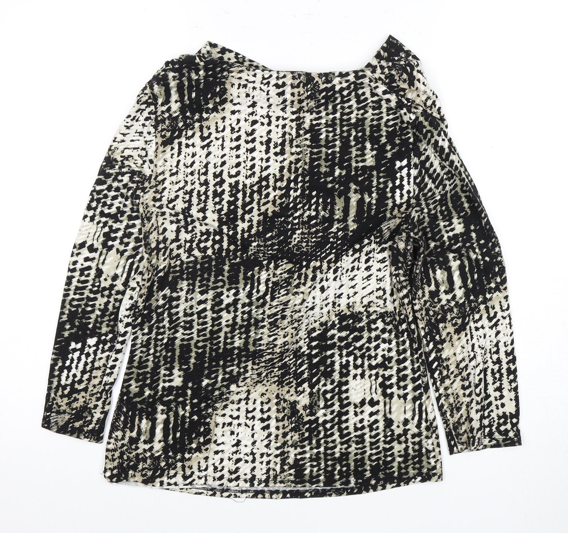 Add a touch of wild sophistication to your wardrobe with this women's long sleeve top. Featuring a striking animal print design, this top is crafted from a soft blend of viscose and elastane for a comfortable, stretchy fit. Its multicoloured pattern adds a dynamic look, making it a versatile piece suitable for casual or smart-casual occasions. Available in a medium size, this top does not show any specific neckline or sleeve type but maintains a modern and elegant appeal. Excellently maintained, this top promises both quality and style.