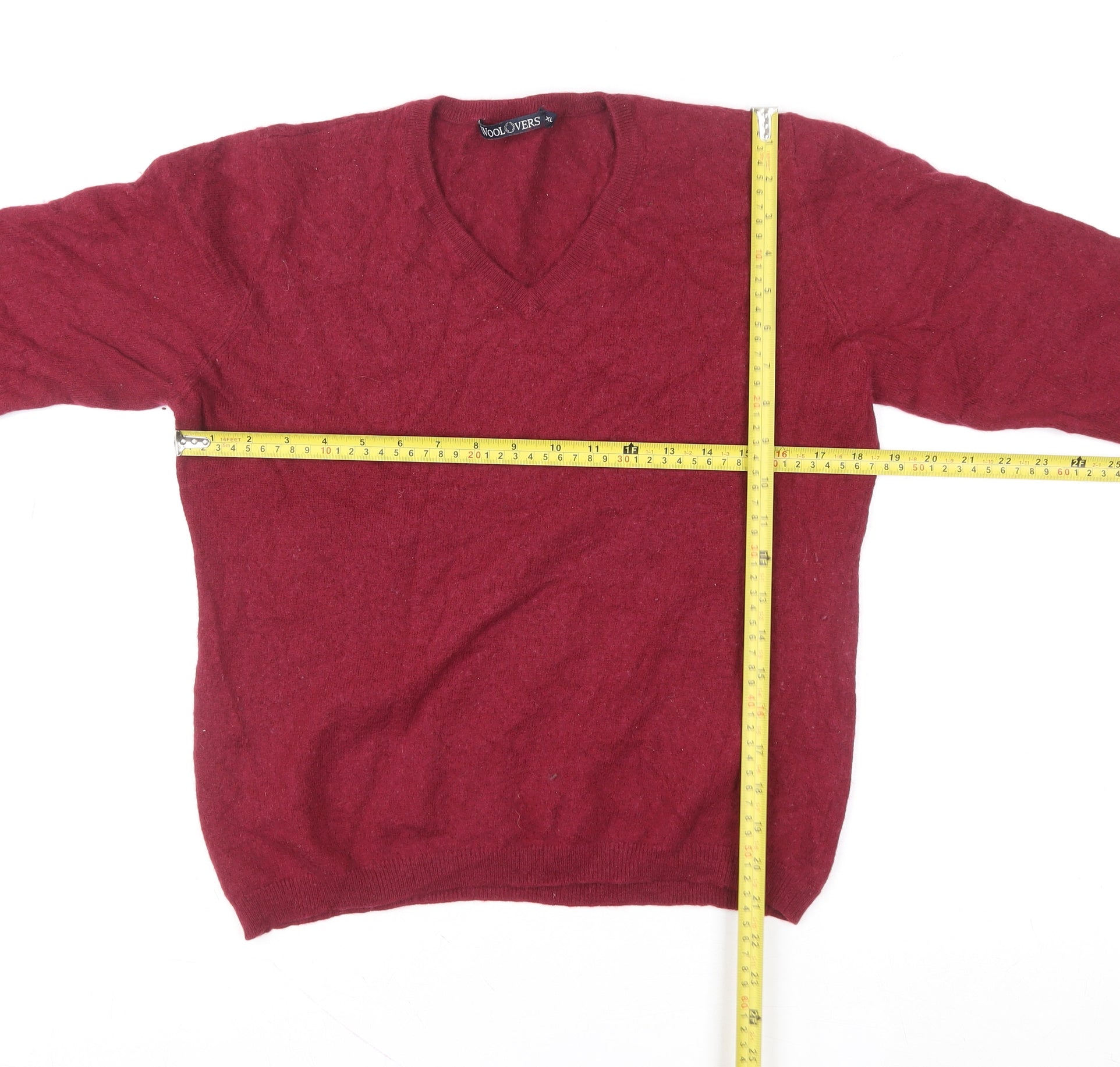 Women Red XL V-Neck Merino Wool Pullover Jumper