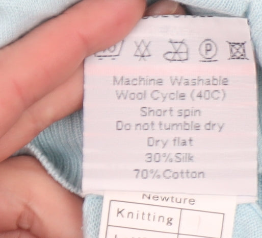 WoolOvers Women's Blue V-Neck Cotton Silk Jumper M