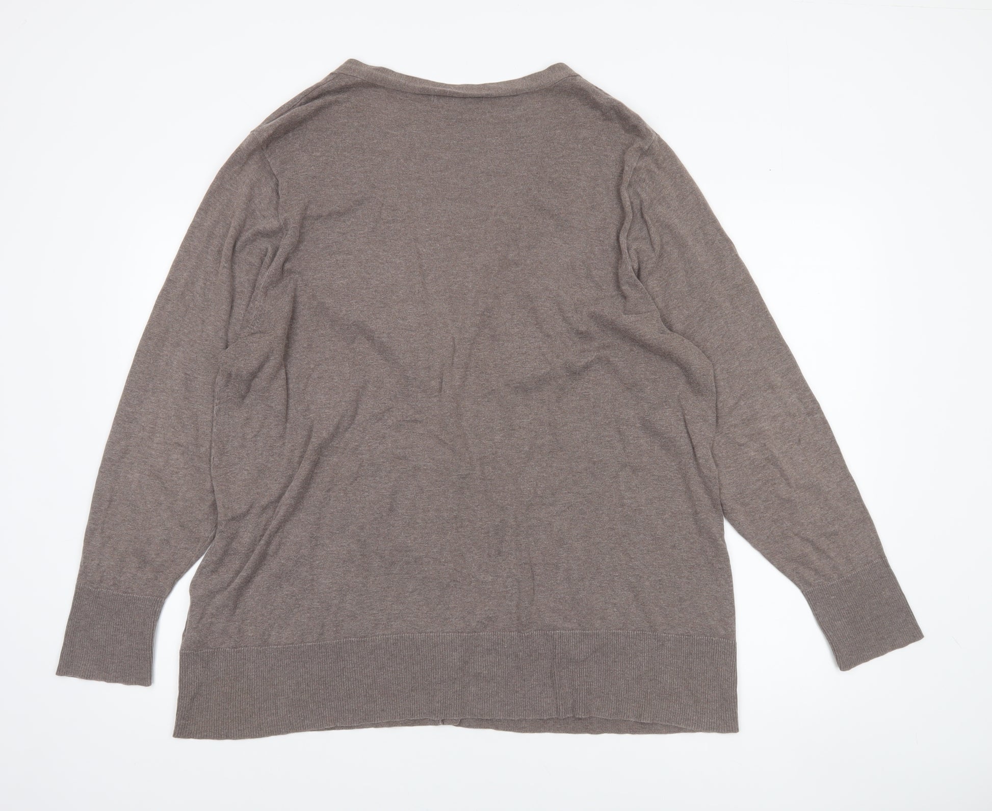 Womens Brown Cotton Silk V-Neck Long Sleeve Cardigan XL