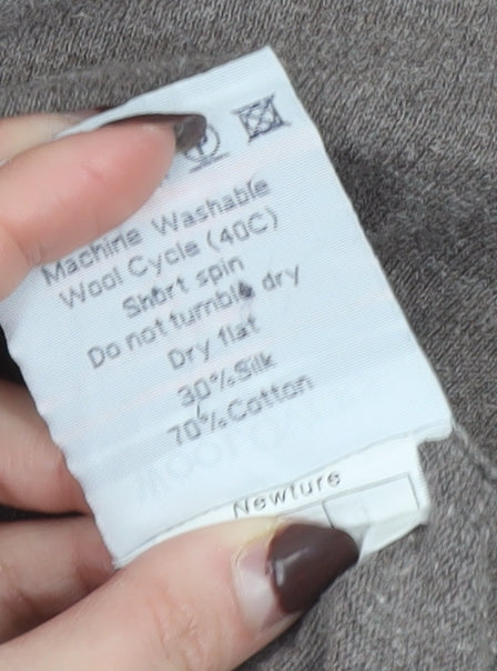 Enjoy timeless comfort and effortless style with this beautifully soft Woolovers women’s cardigan. Crafted from a luxurious blend of 70% cotton and 30% silk, this fine knit offers a breathable yet lightweight feel that’s perfect for layering throughout the seasons. The elegant brown shade brings a touch of sophistication to your everyday wardrobe, while the simple design keeps it versatile enough to dress up or down. Designed with a flattering V-neckline, full button front, and two front pockets, this cardigan combines practicality with understated elegance. The ribbed cuffs and hemline create a comfortable fit that maintains its shape wear after wear. In excellent pre-loved condition, this piece shows minimal signs of use and remains fresh and ready to wear. Ideal for spring through to winter, it can be paired with jeans and a blouse for a casual look or layered over a dress for a more refined outfit. The natural cotton and silk blend provides an exceptionally soft handle, ensuring comfort throughout the day, while the neutral tone complements a wide range of colours in your wardrobe. Whether you’re relaxing at home, heading to the office, or enjoying a weekend outing, this Woolovers cardigan is a classic must-have. Treat yourself to everyday luxury and versatility with this beautifully crafted knitwear essential that embodies effortless British style and quality.