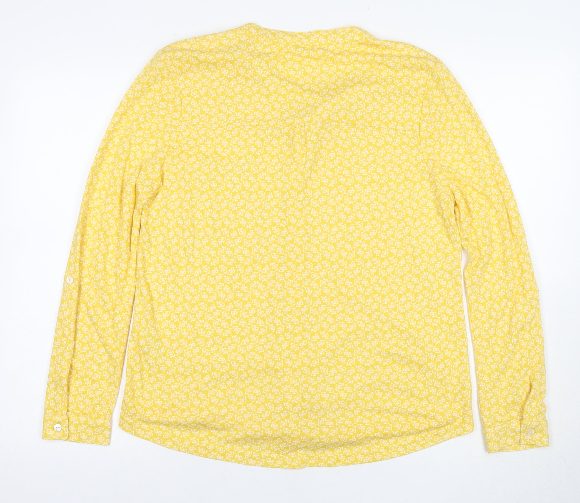Add a splash of colour to your wardrobe with this vibrant yellow floral blouse from WoolOvers. Made for the modern woman, this long sleeve blouse combines comfort and style effortlessly. Its soft cotton blend feels gentle against the skin, making it perfect for casual outings. The blouse features a flattering V-neckline and a button accent that adds a chic touch to the overall design. The floral pattern and cheery yellow colour ensure you stand out from the crowd, while the classic fit makes it easy to pair with jeans or skirts. Its machine-washable fabric ensures that it stays easy to care for. Ideal for casual occasions, this blouse reflects both style and practicality. Available in medium size, it suits regular body types beautifully. Whether you're heading out for a leisurely brunch or running errands, this WoolOvers blouse will keep you looking fabulous all day long. Don't miss out on making this stylish piece a part of your fashion repertoire.