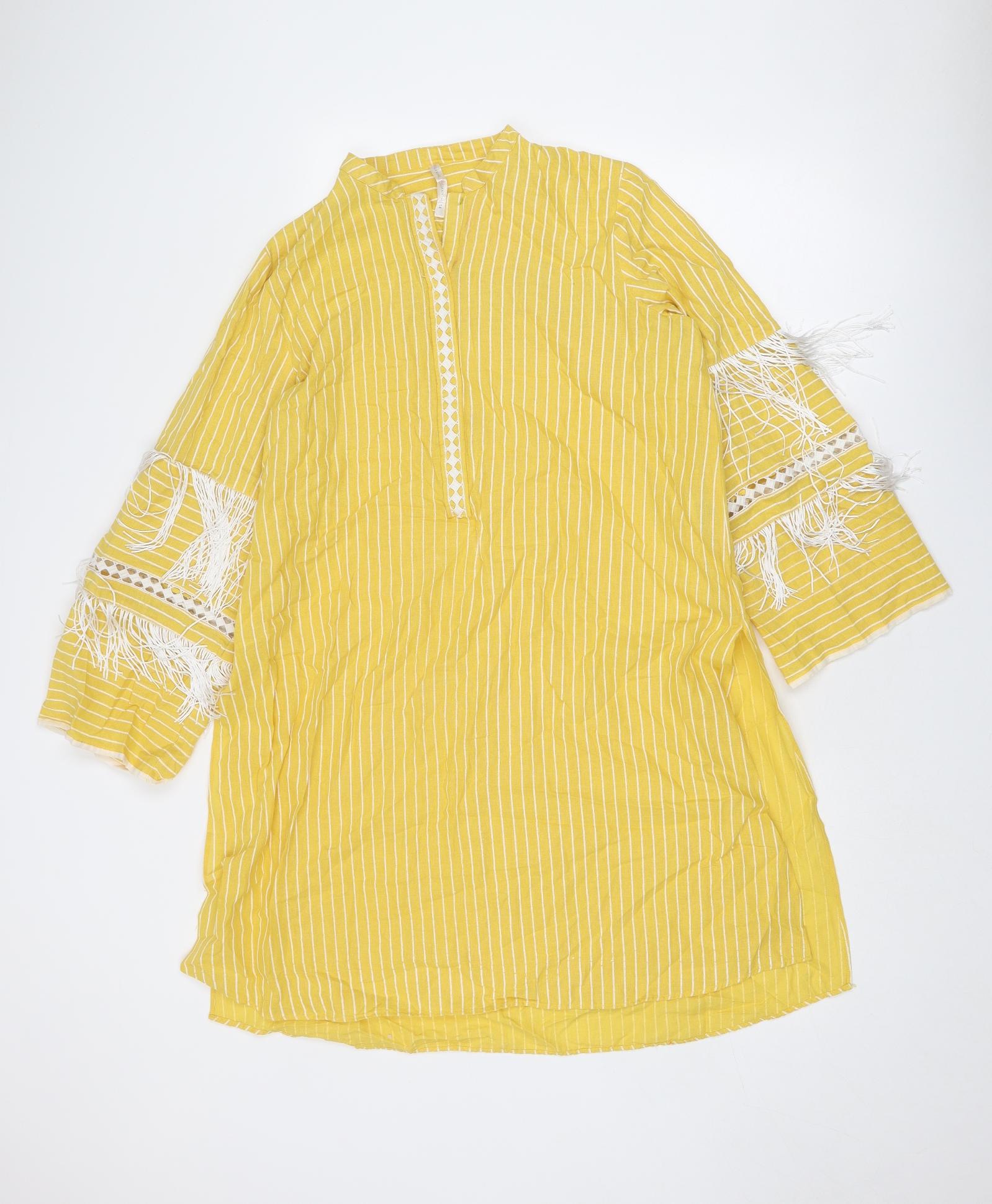 Womens Yellow Striped Polyester Basic Blouse Size 14 V-Neck