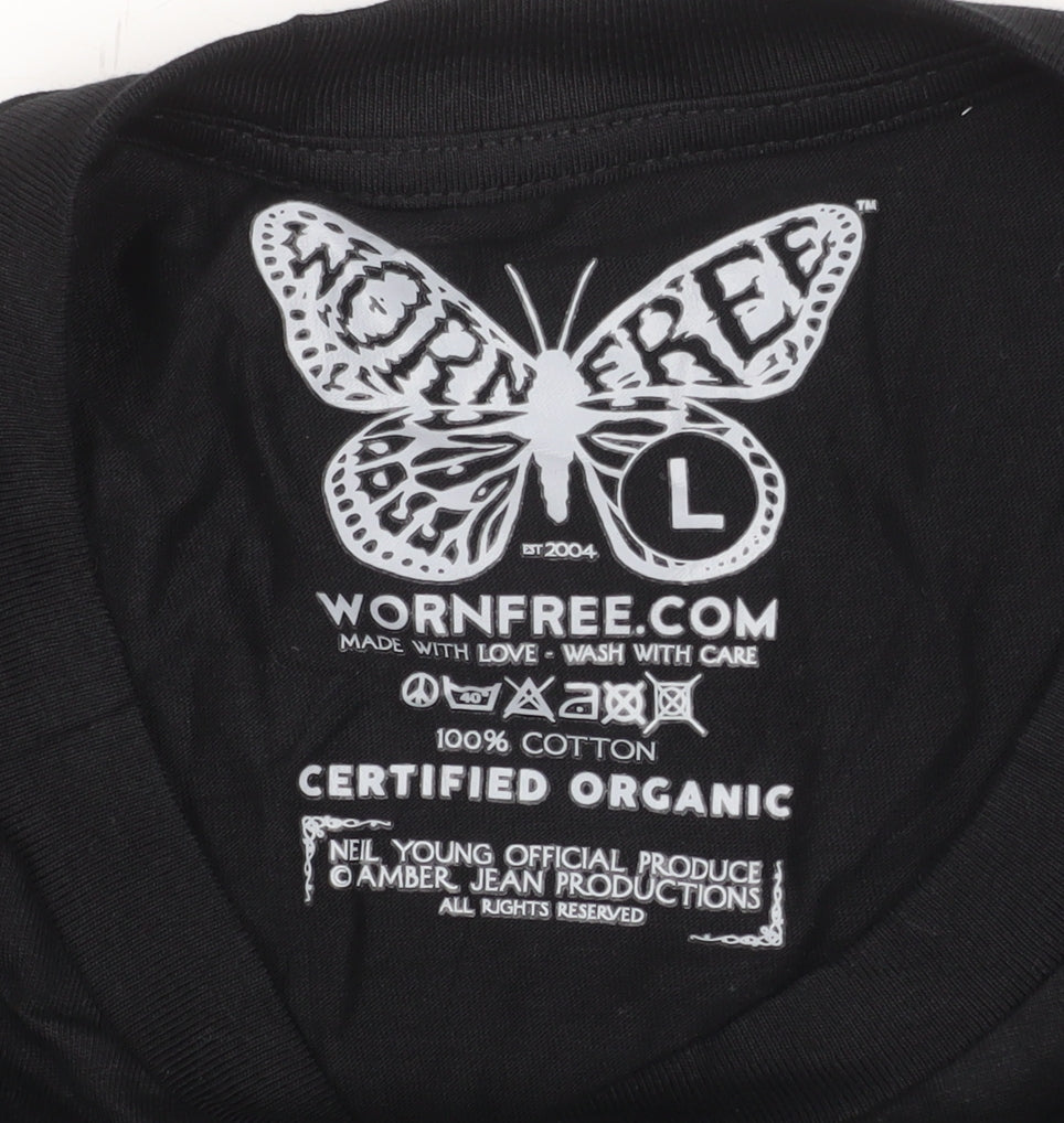 Bring a relaxed, vintage-inspired edge to your wardrobe with this Worn Free men’s black ‘Where The Buffalo Roam’ T-shirt. Crafted from 100% certified organic cotton, this soft jersey tee provides breathable, lightweight comfort, perfect for everyday wear. Designed with a bold red graphic print on the front, the shirt captures a retro movie vibe that stands out in a simple yet stylish way. The Worn Free brand is known for its homage to classic and cultural icons, and this shirt is both timeless and easy to pair with anything from jeans to shorts. The crew neckline and short sleeves add to the classic silhouette, while the regular fit ensures comfort throughout the day. Ideal for casual outings, gigs, festivals, or laid-back weekends, it’s a must-have for those who love understated style with a hint of nostalgia. Machine washable and made to last, this T-shirt not only looks good but is environmentally conscious, certified organic and ethically produced. Whether layered under a jacket or worn alone, it’s a great statement piece that combines sustainability, quality, and timeless design. Condition is excellent with no visible marks or damage, showing gentle signs of previous wear but still in great shape. A high-quality, collectible design from Worn Free at an affordable price—ideal for fans of classic movies or stylish, organic fashion. Perfect for spring, summer, or autumn wear.