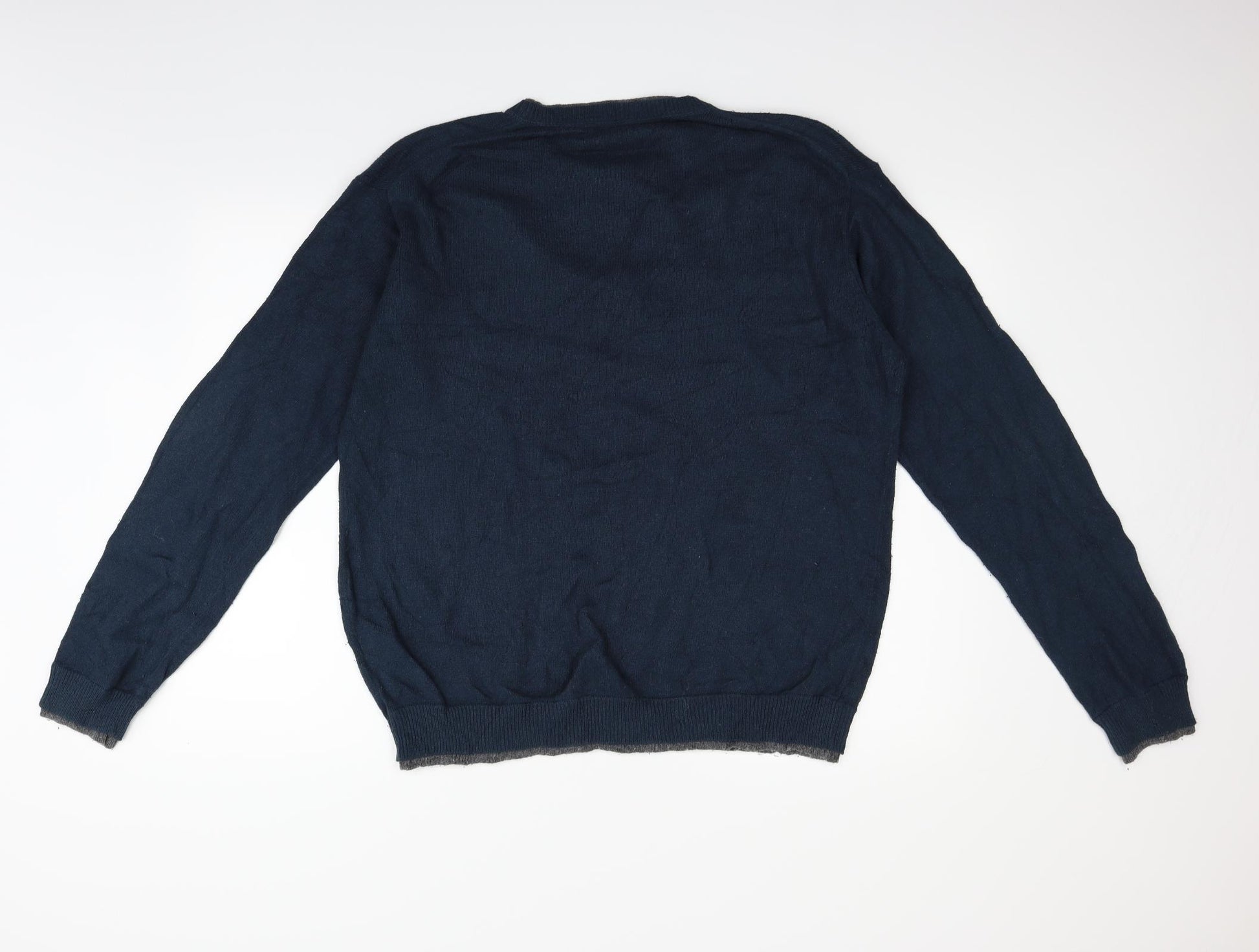 DG's Drifter Men Blue L V-Neck Cotton Acrylic Pullover Jumper