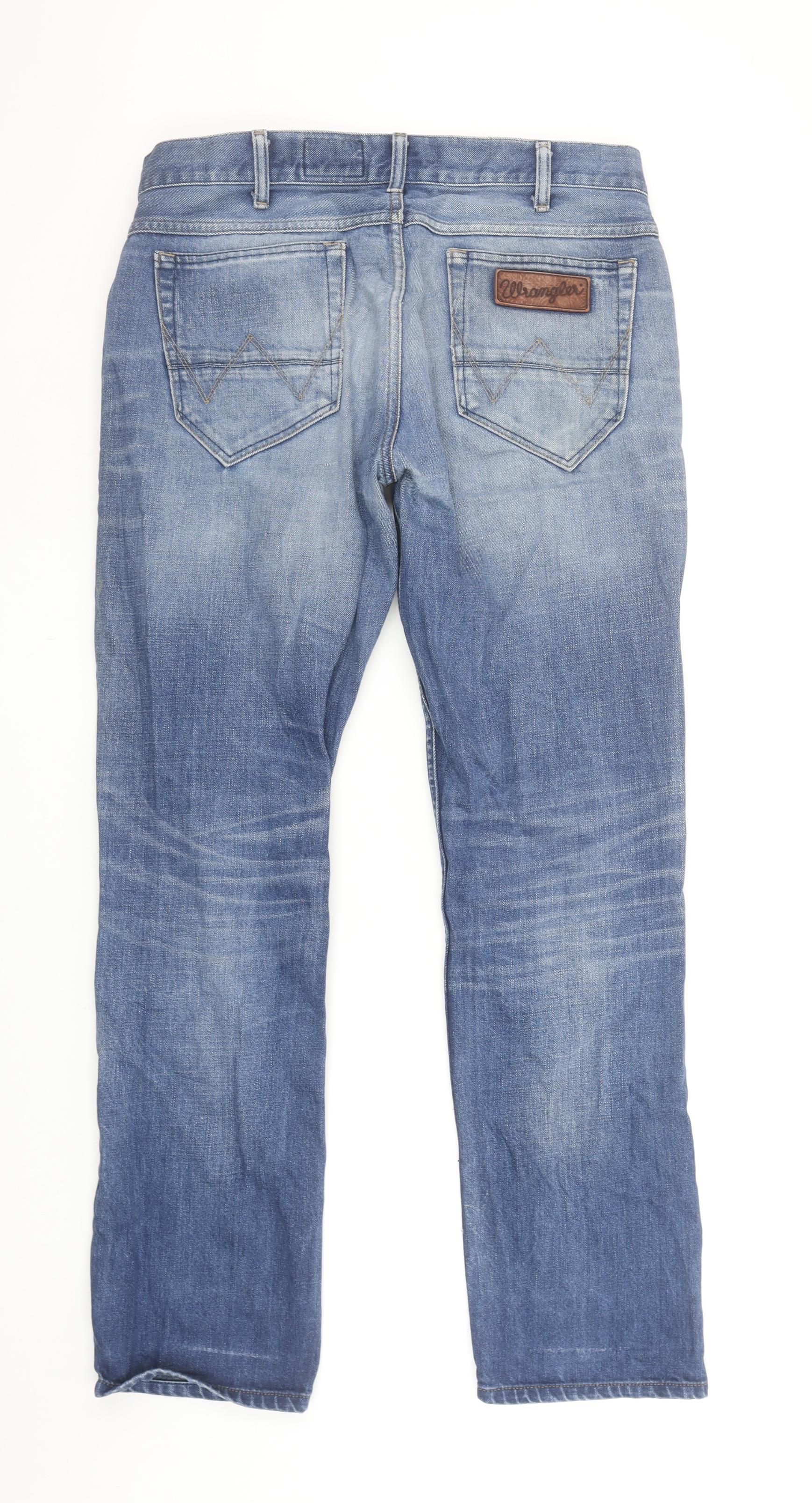 Wrangler Men's Blue Flared Jeans 30x32 Distressed Denim
