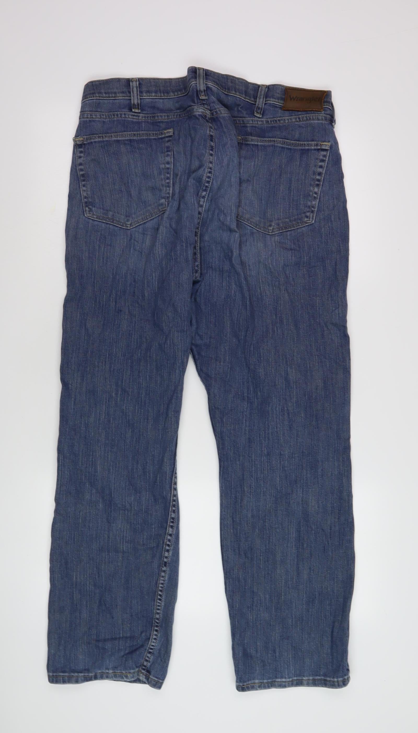 Elevate your wardrobe with these classic Wrangler Men's Straight Jeans in a versatile blue shade. Designed for comfort and style, these jeans feature a slim fit that flatters a range of body types, making them the perfect addition to any outfit. Crafted from premium denim fabric, which is 99% cotton and 1% elastane, these jeans provide the perfect blend of softness and stretch, ensuring maximum comfort throughout the day.The jeans come with a convenient 5-pocket design, offering ample space to keep your essentials handy, whether you're running errands or heading out for a night on the town. The mid-rise style provides a comfortable fit, enhancing your silhouette without compromising on style. The medium fabric wash gives them a modern look, perfectly suitable for both casual and semi-formal occasions.These jeans feature a secure zip closure and subtle button accents, combining practicality with understated style. With excellent condition notes and minimal signs of wear, these jeans are ideal for those seeking a reliable and stylish wardrobe staple. Be it a relaxed day at work or a casual outing, these Wrangler jeans are versatile enough to suit any season, from autumn through summer.Machine washable for easy care, these jeans promise durability and resilience, making them a smart investment for any fashion-forward individual. Enhance and refresh your denim collection with these essential jeans, which seamlessly blend function with high-end fashion. Don't miss the chance to own a pair of jeans that not only make you look good but feel good too. Invest in timeless style and comfort with these premium Wrangler jeans today.