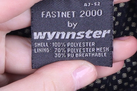 This Wynnster men's jacket, ideal for autumn and winter hiking, features a windproof design and a practical full zip closure. The durable polyester shell in stylish green boasts a stand-up collar and zip accents, making it both functional and attractive. Perfect for a casual occasion, this mid-length jacket is sized small for a regular fit, suitable for outdoor enthusiasts. Despite minor stains on the front, the jacket remains in good condition. Ensure you stay warm and comfortable while exploring the great outdoors with this classic piece of active clothing.