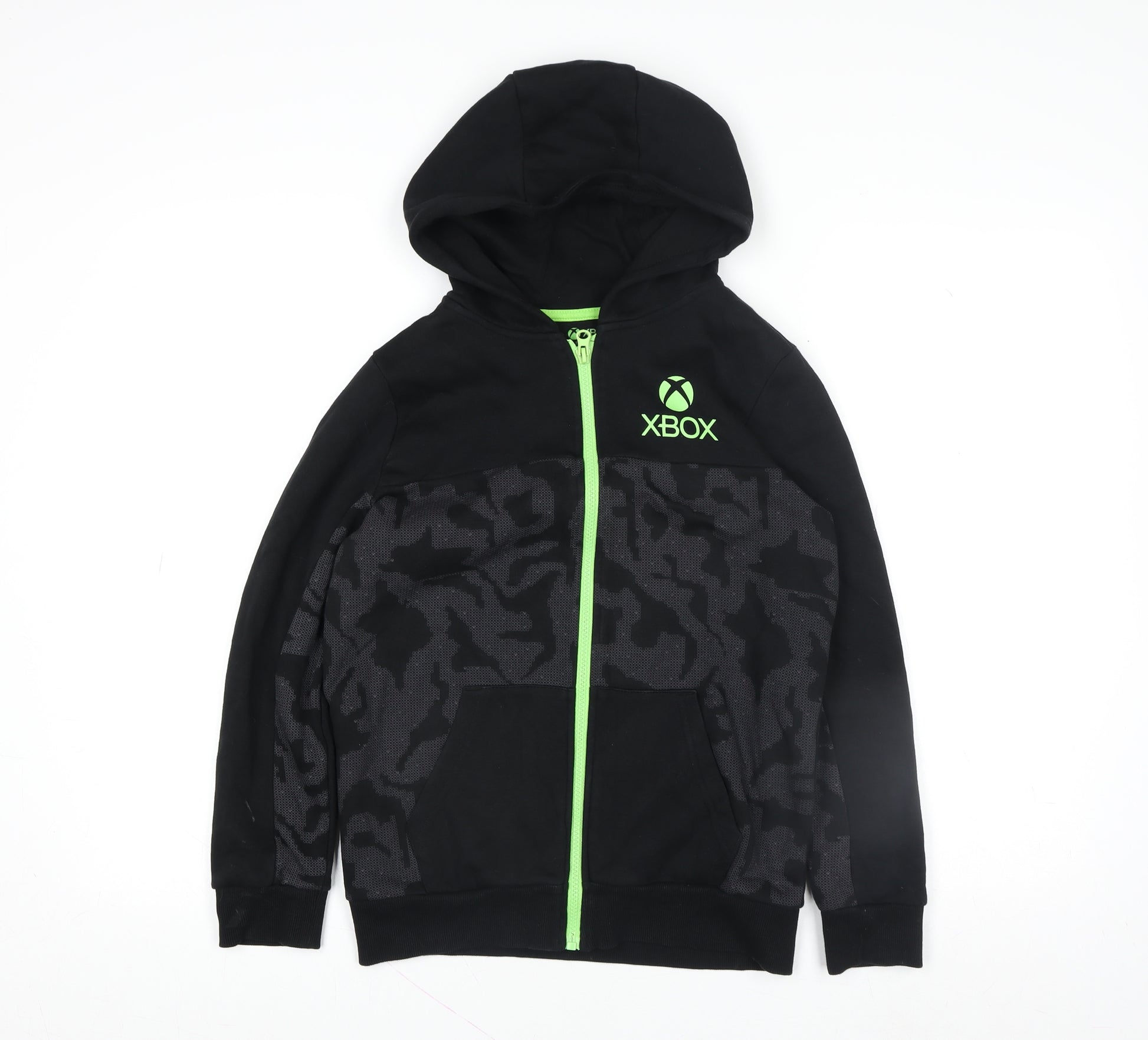 This Xbox boys' black hoodie jacket is the perfect choice for young gaming enthusiasts who want to stay comfortable and stylish. Designed for ages 10–11 years, this jacket features a sleek black base with eye‑catching neon green Xbox branding and zip that gives a bold, modern look inspired by gaming culture. Crafted from a durable blend of 70% cotton and 30% polyester, it provides the perfect balance of warmth and breathability, making it great for everyday wear during autumn and winter months.The jacket includes a soft fleece lining crafted from polyester for added comfort, helping to keep kids warm while maintaining a lightweight feel. The hooded design offers extra protection against the elements, and the full‑zip front makes it easy to take on and off. The camouflage patterned sections on the body and sleeves add a cool, modern touch, while the ribbed cuffs and hem ensure a snug fit. Ideal for school runs, weekend wear, or casual outings, this hoodie jacket blends practicality and Xbox style perfectly.With its regular fit, comfortable fleece fabric, and iconic Xbox logo on the chest, it’s a must‑have piece for any gamer’s wardrobe. Finished in excellent condition with no visible flaws or damage, this jacket is ready for plenty more adventures. Machine‑washable for easy care, this versatile piece makes a great gift or wardrobe addition for a young fan of the gaming world.Get this officially licensed Xbox hoodie today and give your child the comfort, warmth, and style that matches their favourite pastime.
