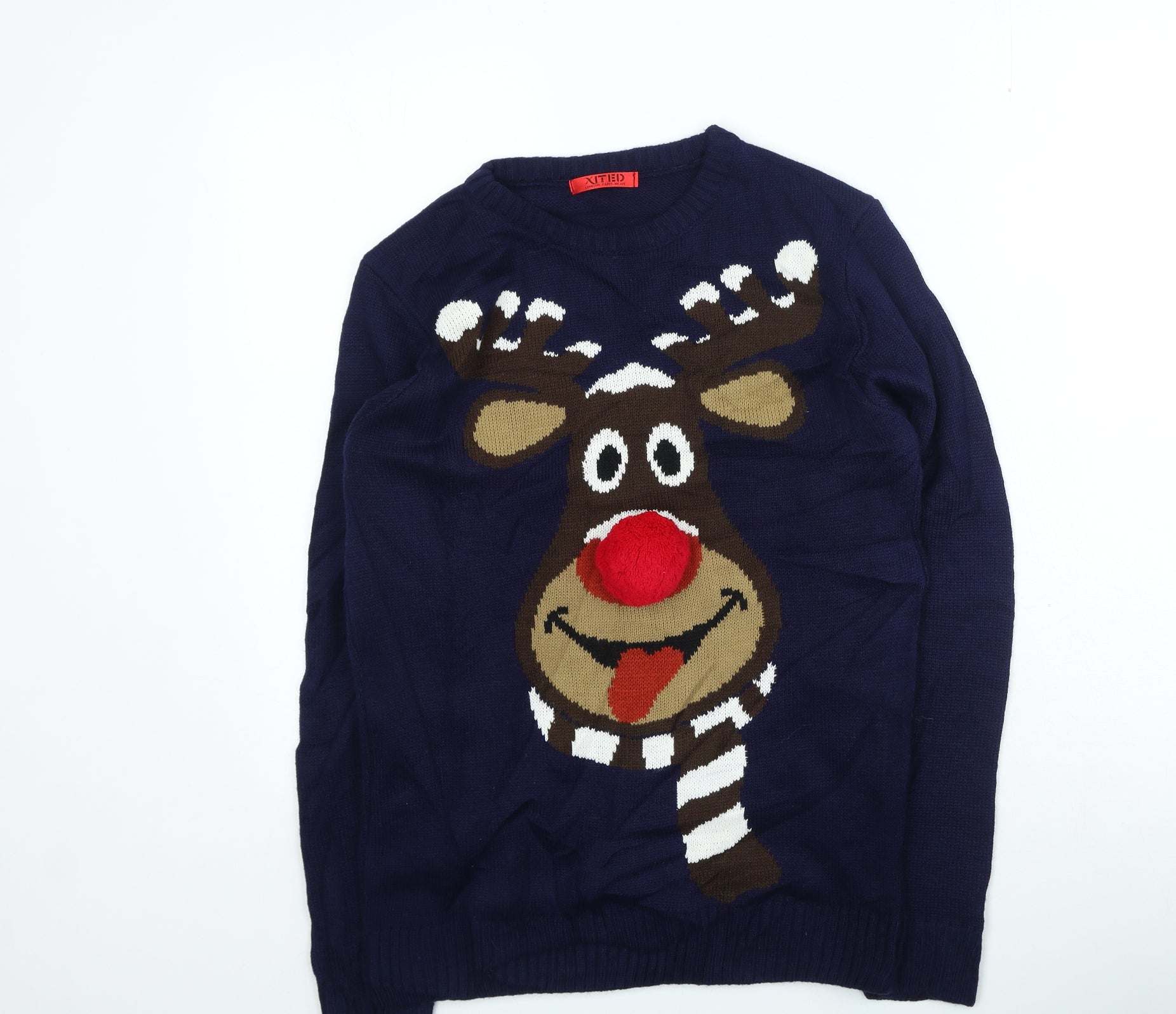 Mens Blue Round Neck Acrylic Pullover Jumper Size S - Christmas Jumper
