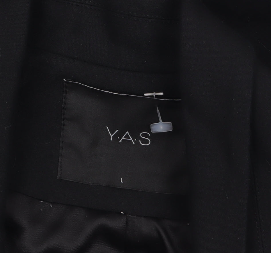 This Y.A.S women’s black blazer offers a timeless and sophisticated look that easily transitions from office wear to smart casual events. Expertly tailored in a flattering single-breasted silhouette, this piece embodies modern minimalism with a touch of classic elegance. Designed for women seeking both style and practicality, the blazer features a sleek one-button front closure and notched lapels, creating a clean, structured aesthetic that complements fitted trousers or skirts effortlessly. Crafted from a durable woven fabric blend of 50% cotton, 45% nylon, and 5% elastane, the jacket ensures both comfort and flexibility for day-long wear. It’s fully lined in 100% polyester, giving a smooth and refined interior finish. Lightweight yet well-structured, this blazer provides an easy fit with subtle stretch for enhanced comfort and movement. The regular fit design flatters the body while maintaining a professional appearance.Perfect for business meetings, corporate events, or smart-casual gatherings, this versatile blazer will quickly become a wardrobe essential. Its understated elegance means it can easily be styled for any season, particularly spring, autumn, and winter. Pair it with a blouse and tailored trousers for a professional look, or wear it over a dress for a chic evening ensemble.The jacket shows light signs of previous wear but remains in excellent condition with no visible marks or faults. Easy to maintain, it is machine washable for convenience. Ideal for the modern woman who wants a polished and practical wardrobe piece, this Y.A.S blazer delivers versatile style and reliable quality at an exceptional value.