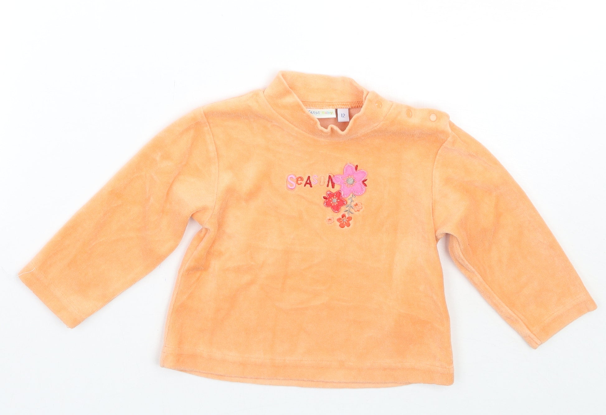 Girls Orange Floral Pullover Jumper Size 12-18 Months