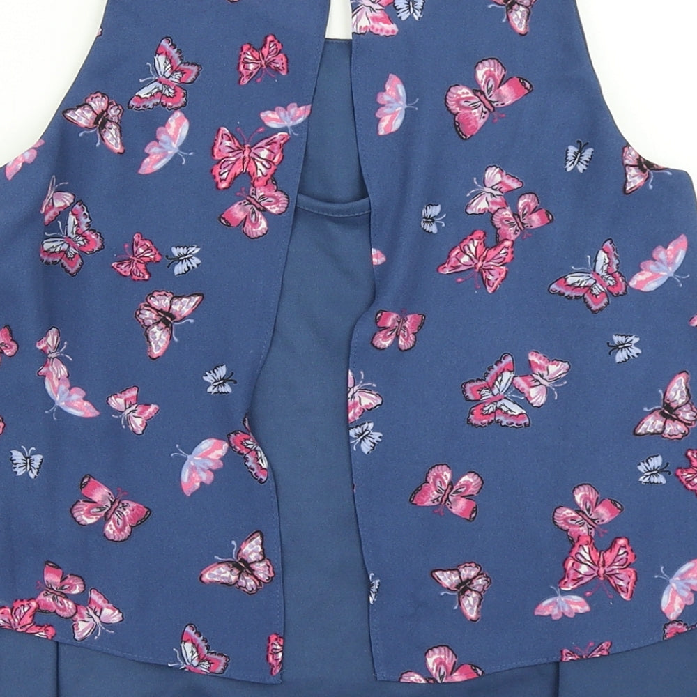 Girls Blue Floral Basic Blouse Size 8-9 Years - Butterfly print