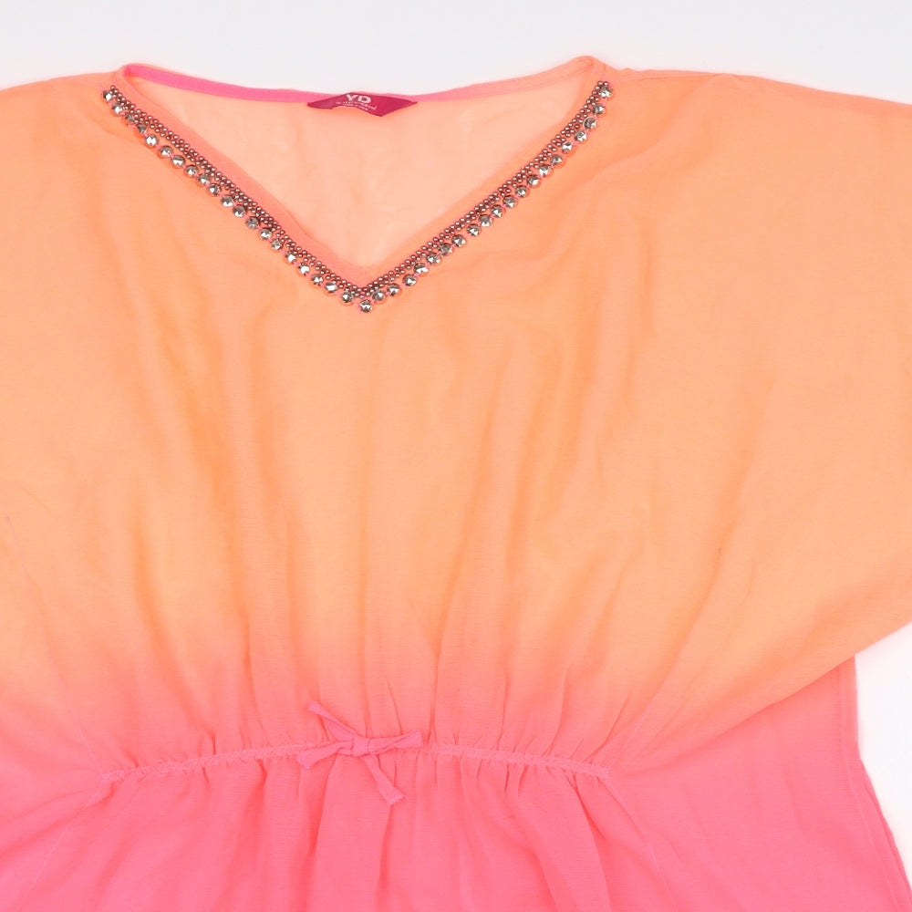 Girls Pink Polyester Basic Blouse Size 12-13 Years V-Neck Pullover - Beach Cover Up