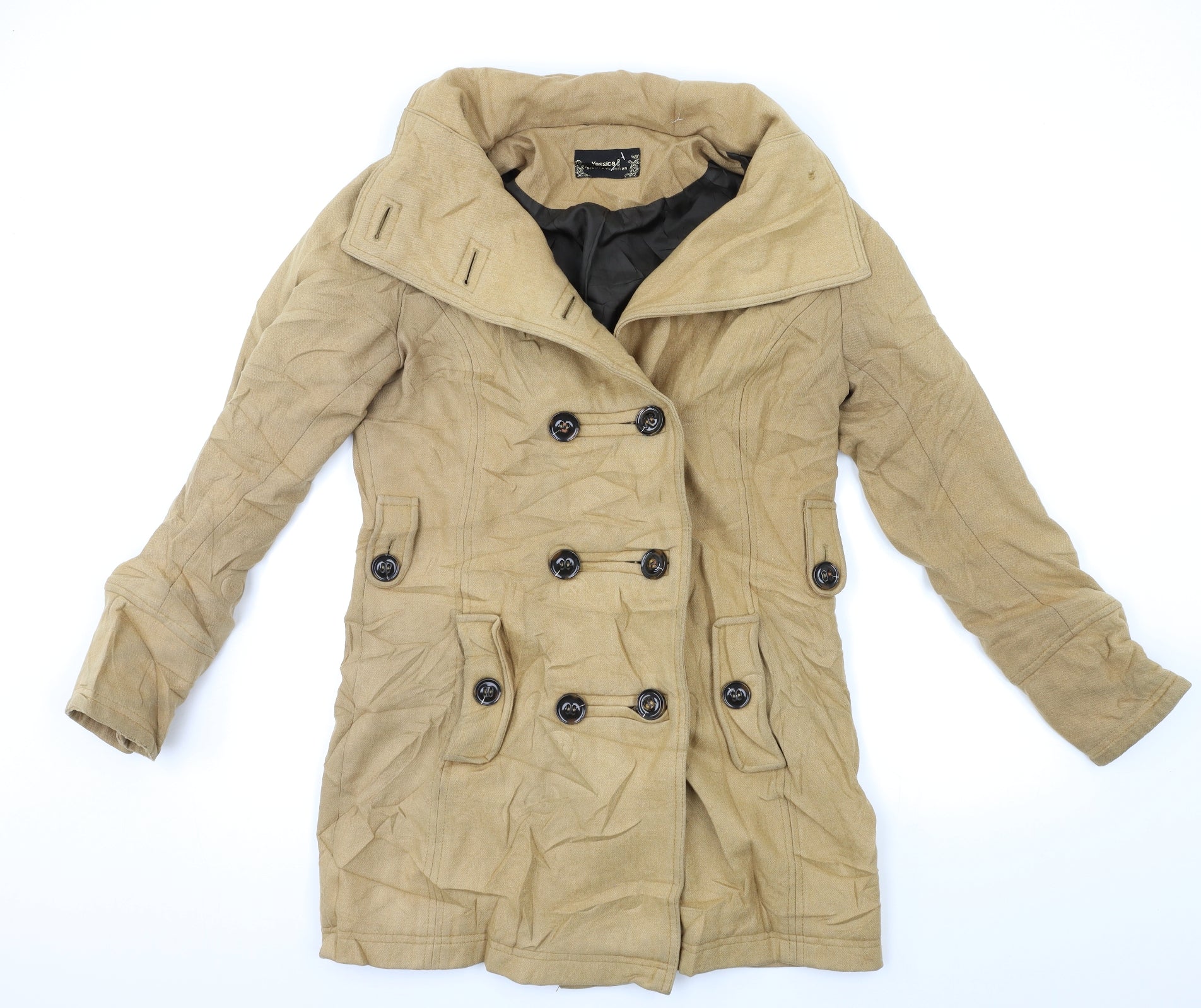 Wallis Women's Beige Pea Coat Size 12 Double Breasted Jacket