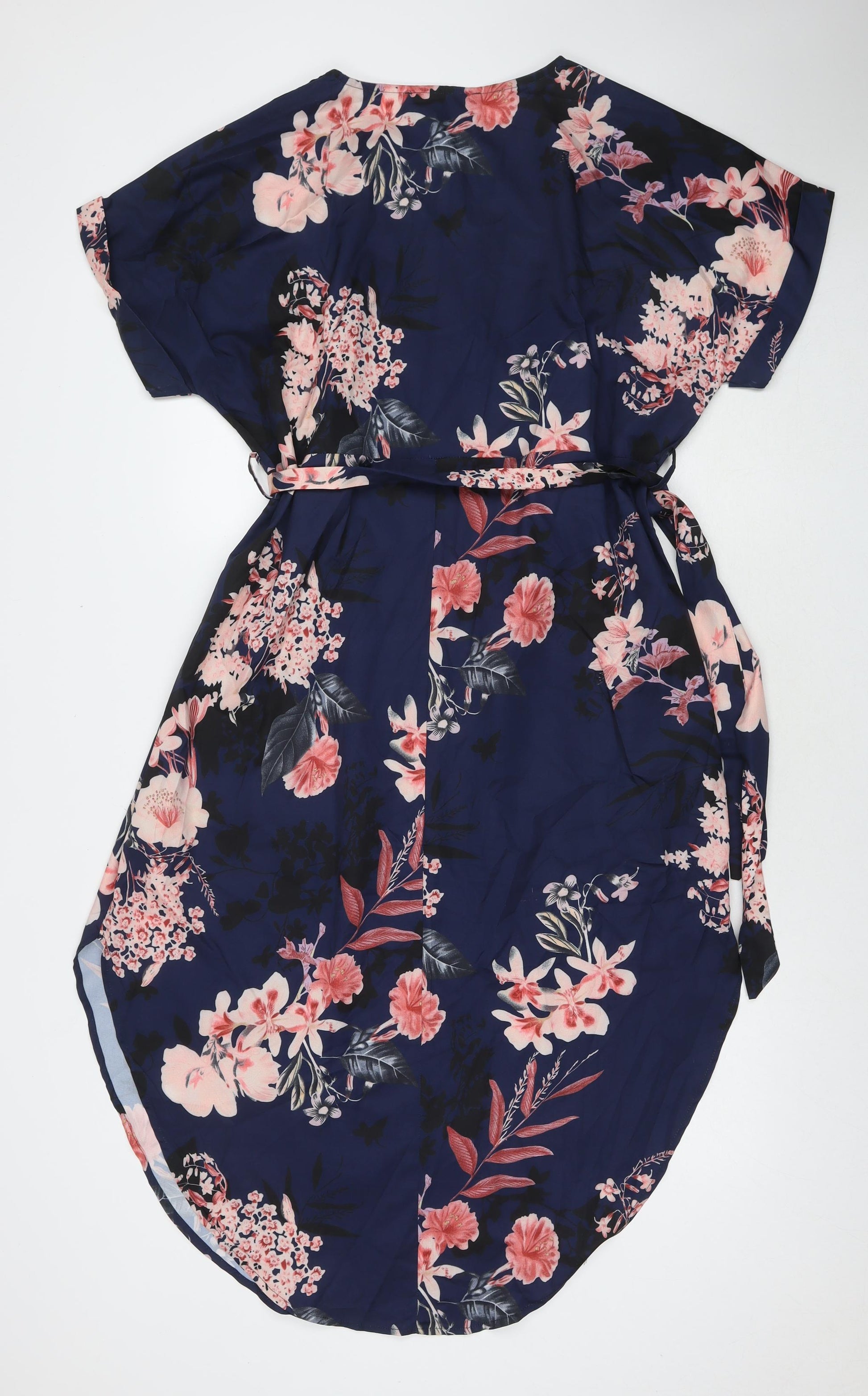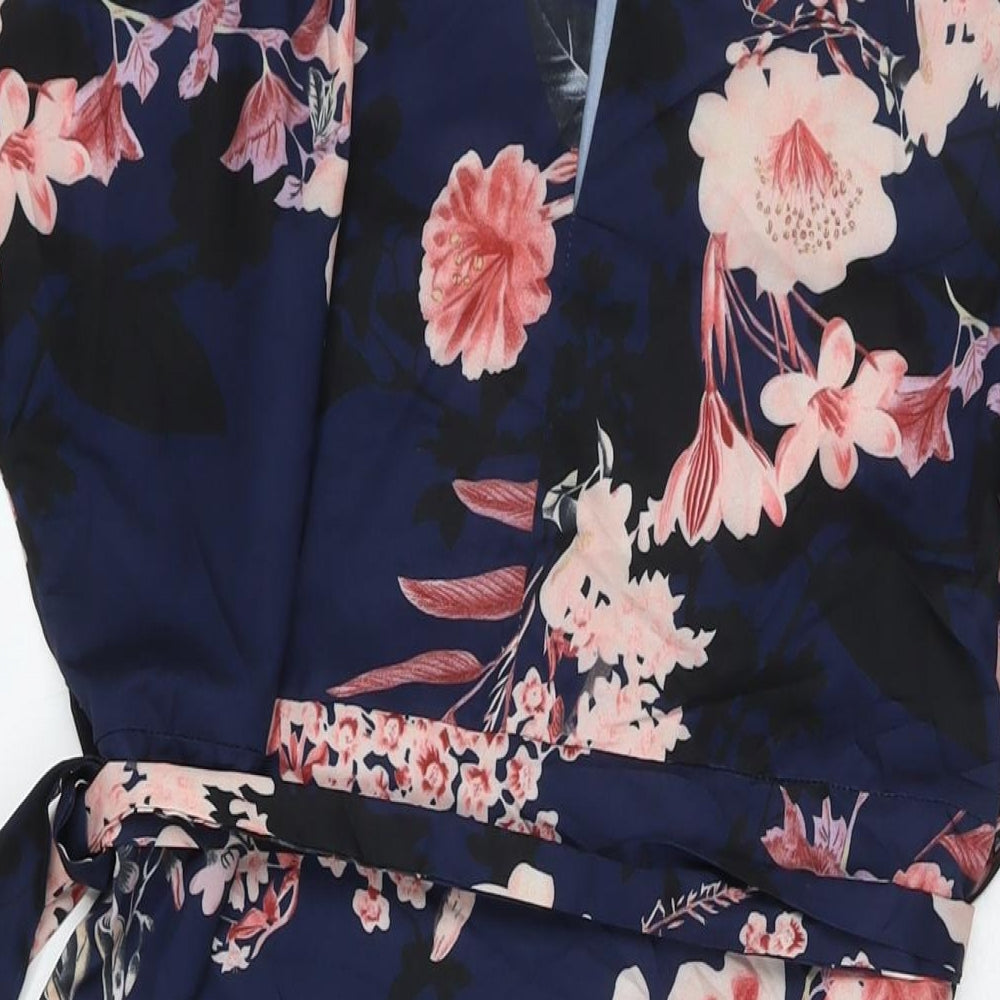 Womens Blue Floral Polyester Maxi Size XL V-Neck Pullover