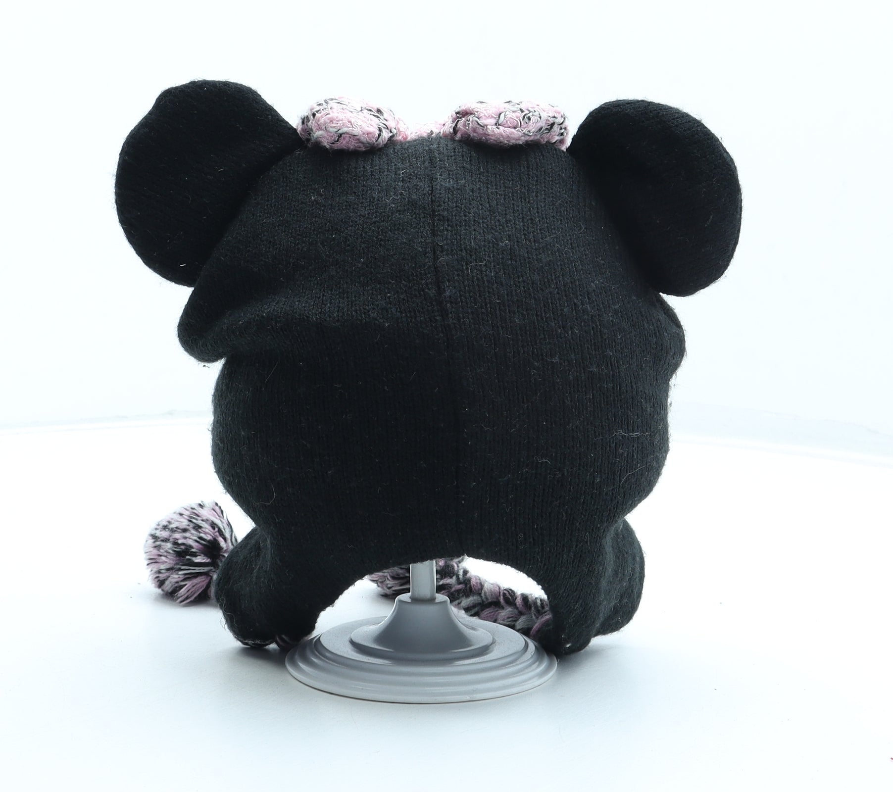 Girls Black Acrylic Winter Hat One Size - Minnie Mouse Pom Pom