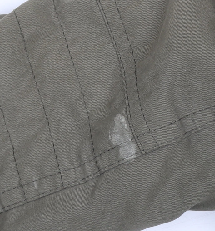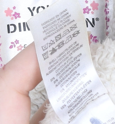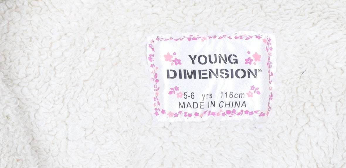 Keep your little one warm and cosy this season with this stylish Girls Green Parka Coat from Young Dimension. Designed with everyday wearability and practicality in mind, this mid-length coat features a soft faux fur-lined hood for added warmth and comfort, perfect for chilly autumn and winter days. The outer shell is crafted from a durable cotton-polyester blend, providing both comfort and resilience against the elements. The coat is fully lined with plush polyester fleece, offering excellent insulation without being too heavy. Practical details such as secure zip and button fastening, large front pockets with stud closures, and an elasticated waist give this parka a fitted yet comfortable silhouette. The faux fur trim around the hood adds a touch of style, while the olive green tone makes it an easy match for most winter outfits. Long sleeves with ribbed cuffs help keep the cold out, ensuring your child stays warm and snug all day long.Ideal for casual occasions, school runs, and outdoor play, this coat combines functionality with fashion. It’s a go-to piece that’s easy to layer over jumpers and jeans. Despite a small mark on one sleeve, it remains in very good pre-loved condition, free from rips or major defects. This quality coat offers excellent value and durability—great for keeping kids both cosy and stylish through the colder months.