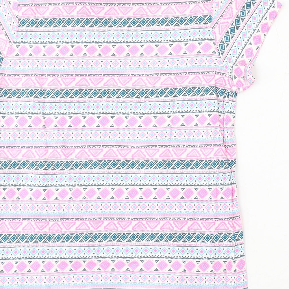 Girls Multicoloured Geometric Cotton Basic T-Shirt Size 12-13 Years Round Neck