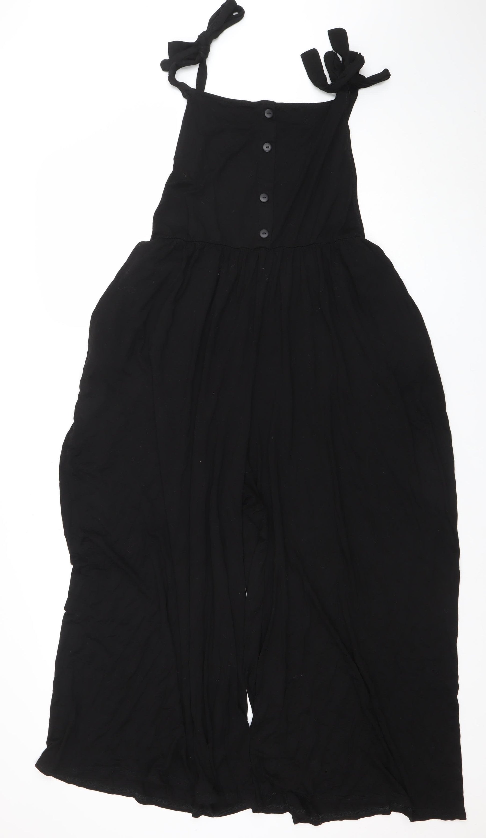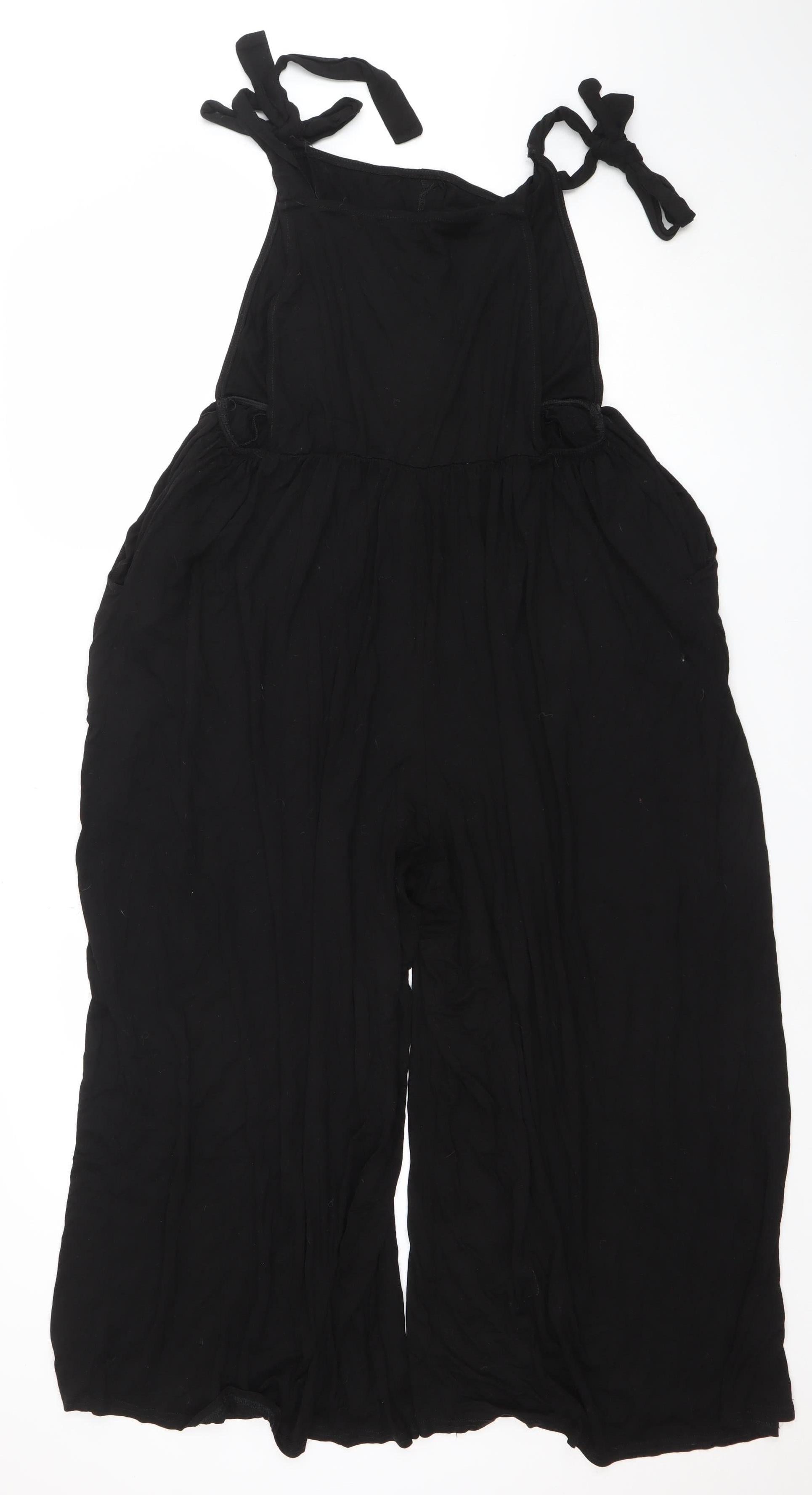 Women Black Viscose Jumpsuit UK 20 Wide-Leg Adjustable Straps