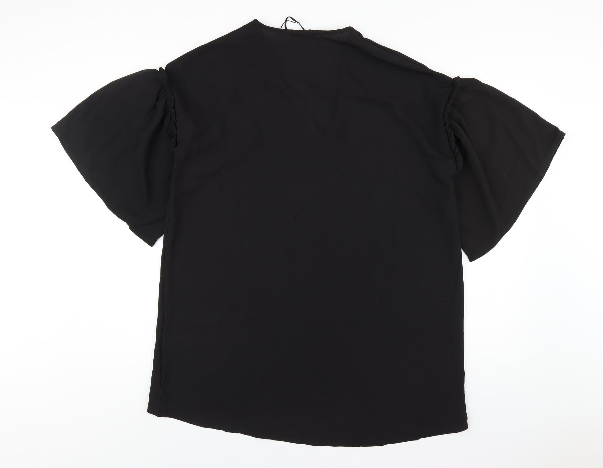 Womens Black Polyester Basic T-Shirt Size 16 V-Neck