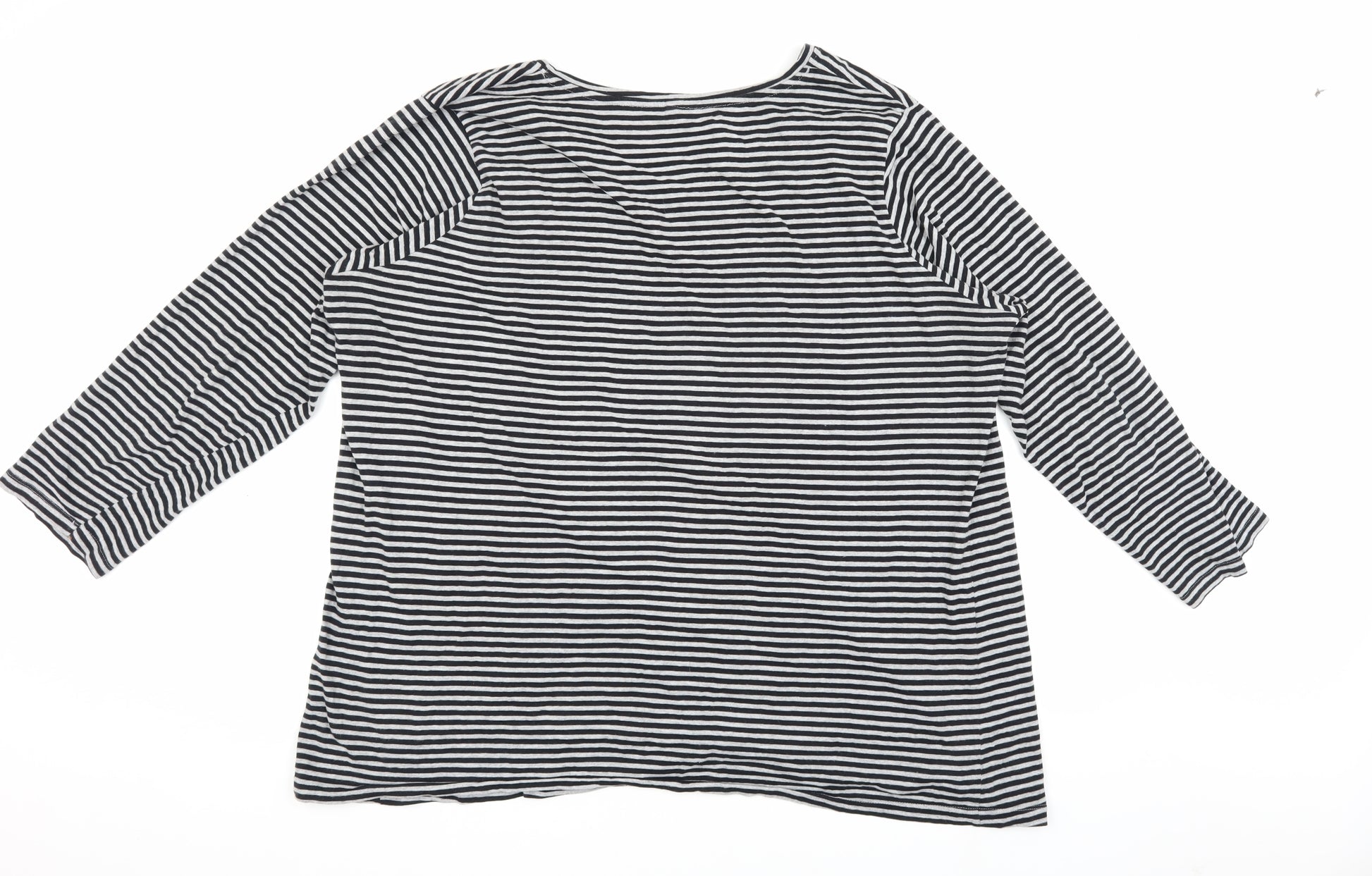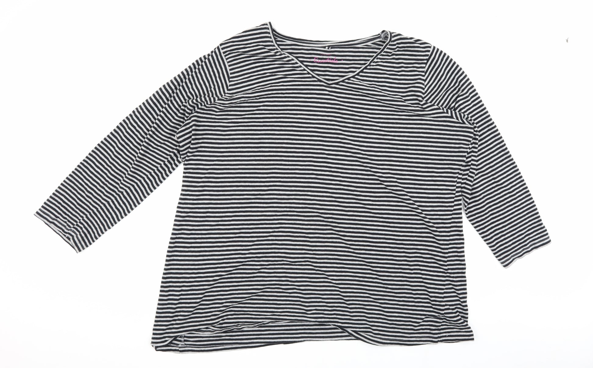 Upgrade your casual wardrobe with this classic black striped T-shirt from Yours. Designed for women in a plus size, with a comfortable regular fit, this piece is perfect for everyday wear. The jersey fabric feels soft against the skin, ensuring all-day comfort. Featuring a V-neckline and 3/4 length fitted sleeves, this T-shirt provides a flattering silhouette suitable for multiple occasions. Whether for work or leisure, you can easily enhance your style with this versatile piece. Made primarily from cotton with a touch of polyester, it offers breathability alongside durable wear. Ensure effortless chic with its pullover design, featuring a timeless striped pattern. Ideal for casual settings, pair this T-shirt with jeans or a skirt for a relaxed look. Machine washable, this garment guarantees easy maintenance. Excellent condition with minimal signs of wear, this T-shirt is a great addition to any fashion-conscious woman's collection. Don't miss your chance to enjoy the comfort and style this Yours T-shirt brings.