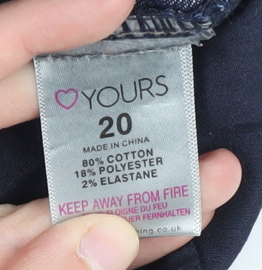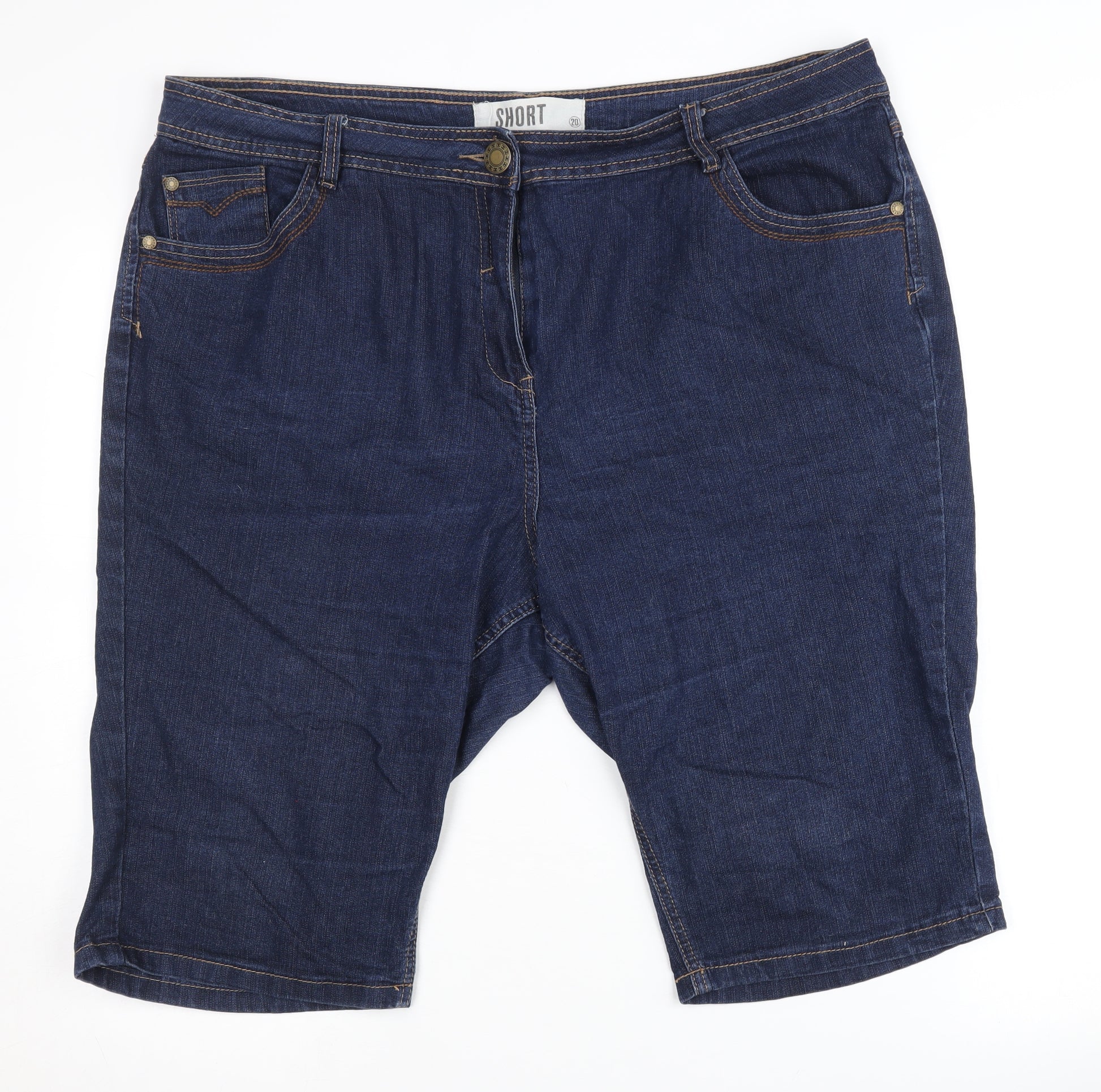 Get ready for casual outings with these blue denim shorts by Yours. Perfectly designed for women in size 20, these shorts offer a relaxed yet stylish fit. Made from a comfortable blend of cotton, polyester, and elastane, they provide excellent breathability and a slight stretch for ease of movement. The classic dark wash denim is complemented by a button and zip closure, making it a timeless addition to your wardrobe.Featuring a 5-pocket design, these shorts are both practical and fashionable, ideal for carrying small essentials on the go. The mid-rise style ensures a comfortable fit throughout, whether you're out for a stroll or enjoying a casual gathering. The shorts are machine washable, making them easy to care for and maintain, keeping them looking fresh and stylish with every wear.With no visible signs of wear and tear, these shorts are in excellent condition. Primed for spring, summer, and autumn, they transition effortlessly across seasons, ensuring you stay in style and comfort. Add these versatile shorts to your collection and pair them effortlessly with your favourite tops and accessories for a chic, everyday look.