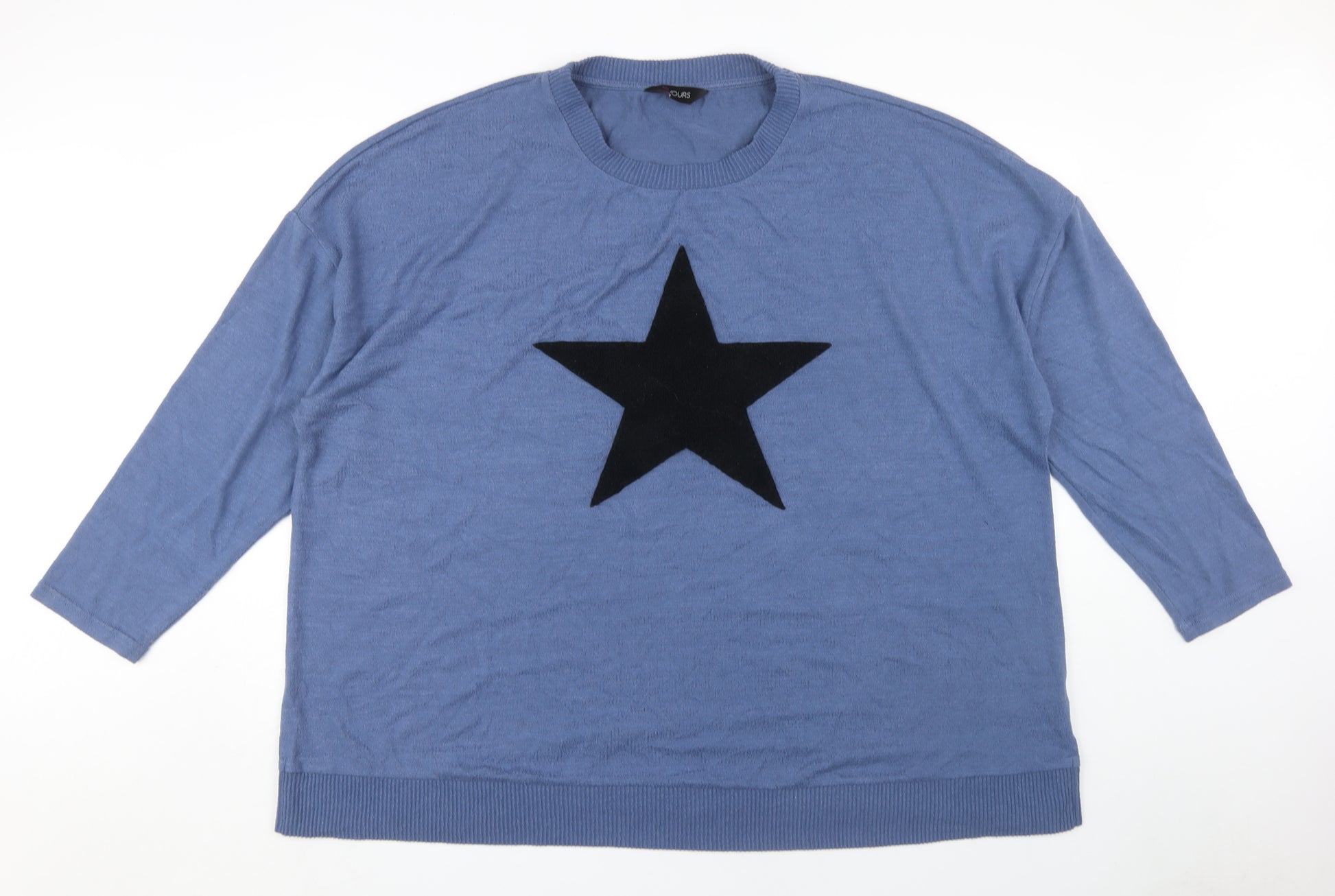 Elevate your casual wardrobe with this stylish and comfortable Yours blue pullover jumper. Designed for women, this plus size 26-28 jumper is perfect for all seasons, offering a relaxed fit that ensures comfort without compromising on style. Featuring a bold black star motif on the front, this knit jumper brings a unique touch to any outfit, making it ideal for everyday wear or relaxed outings. The 3/4 sleeve length and crew neck add to its versatile and easy-going design. Crafted from a blend of viscose, polyester, and elastane, it promises both softness and durability, while being machine washable for convenience. With a simple yet striking star pattern, it's a piece that stands out in any wardrobe. Whether you're pairing it with jeans for a laid-back look or layering it for extra warmth, this jumper is the perfect addition to your clothing collection. Ready to add personality and comfort to your sweater lineup!