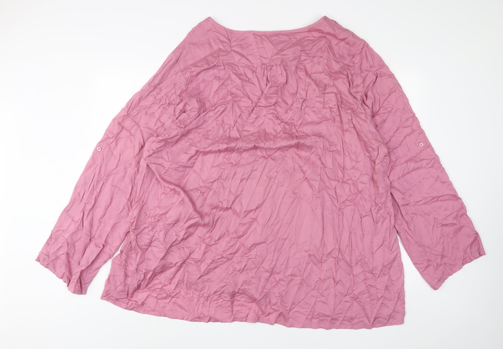 Womens Pink Viscose Basic T-Shirt Size 26 V-Neck - 26/28
