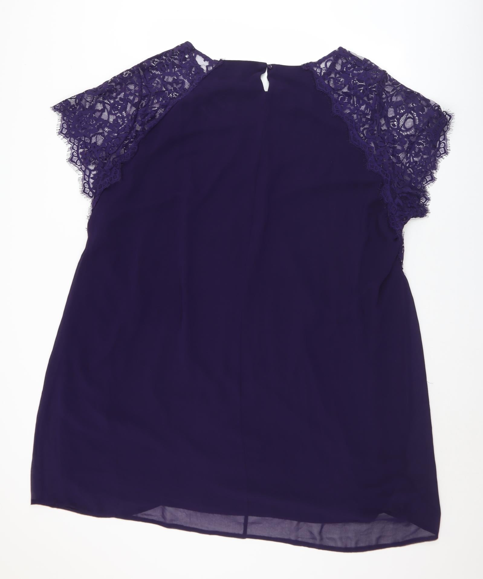 Womens Purple Polyester A-Line Size 30 Round Neck Button - 30/32
