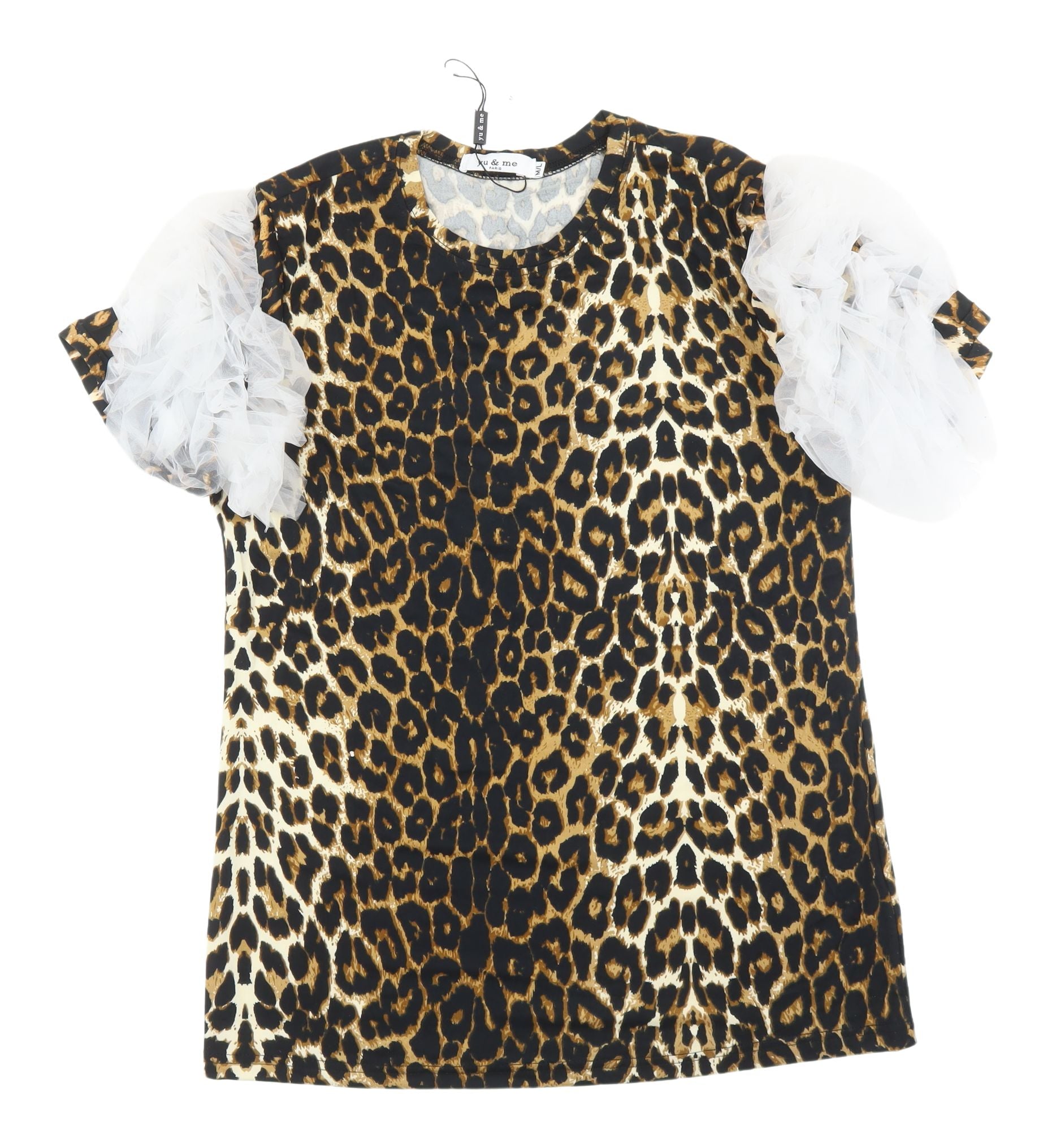 Yu & Me Women's Leopard Print Puff Sleeve T-Shirt, M