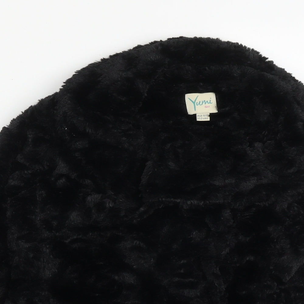 Girls Black Overcoat Jacket Size 11-12 Years Button