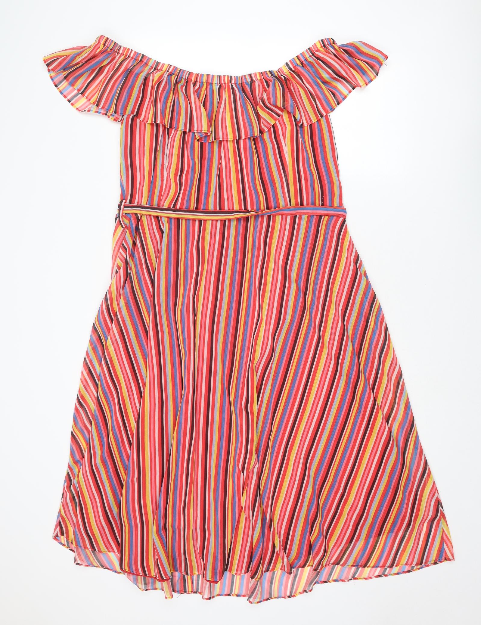 Womens Multicoloured Striped Polyester A-Line Size 20 Off the Shoulder Button