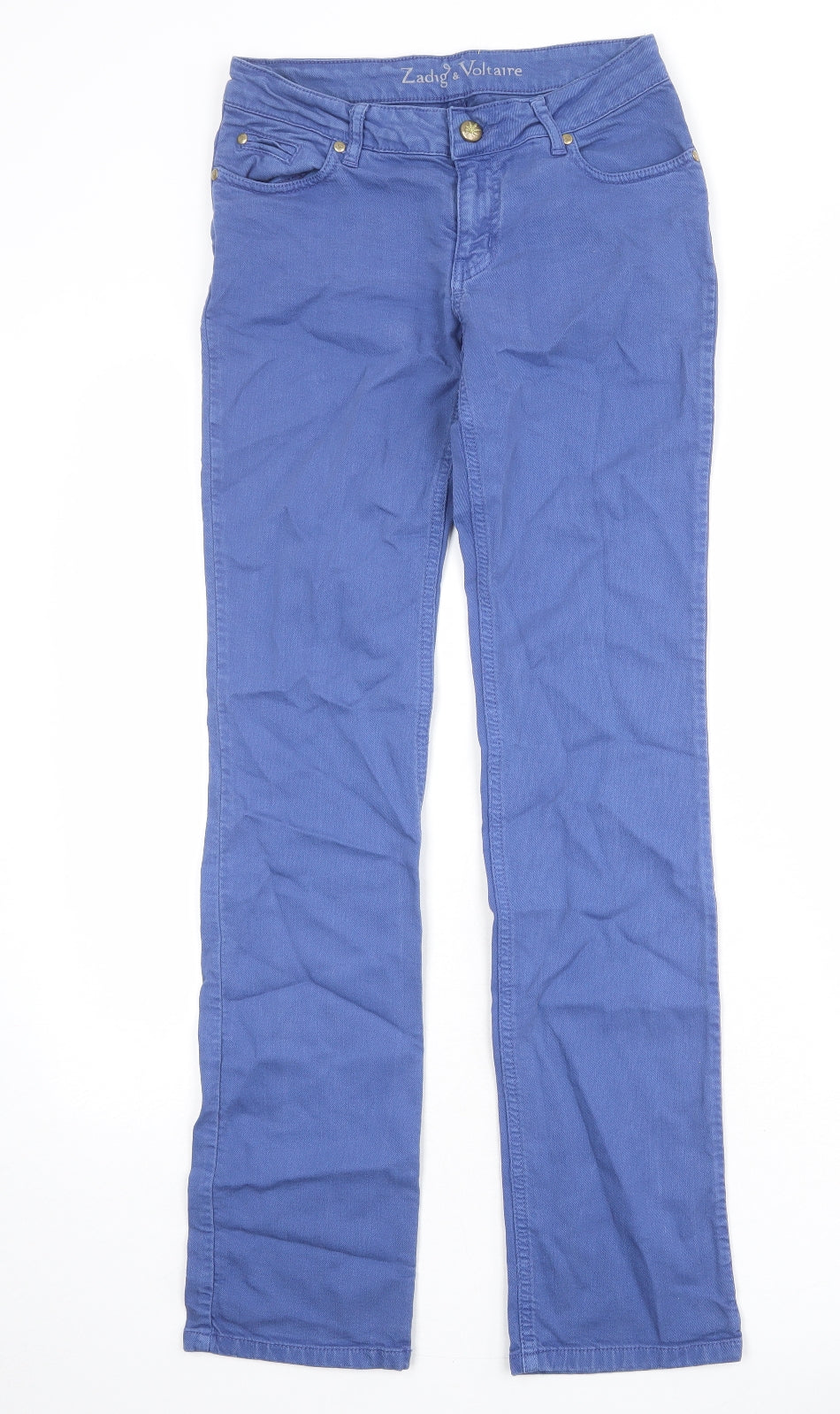Womens Blue Cotton Straight Jeans Size 27 in Regular Zip