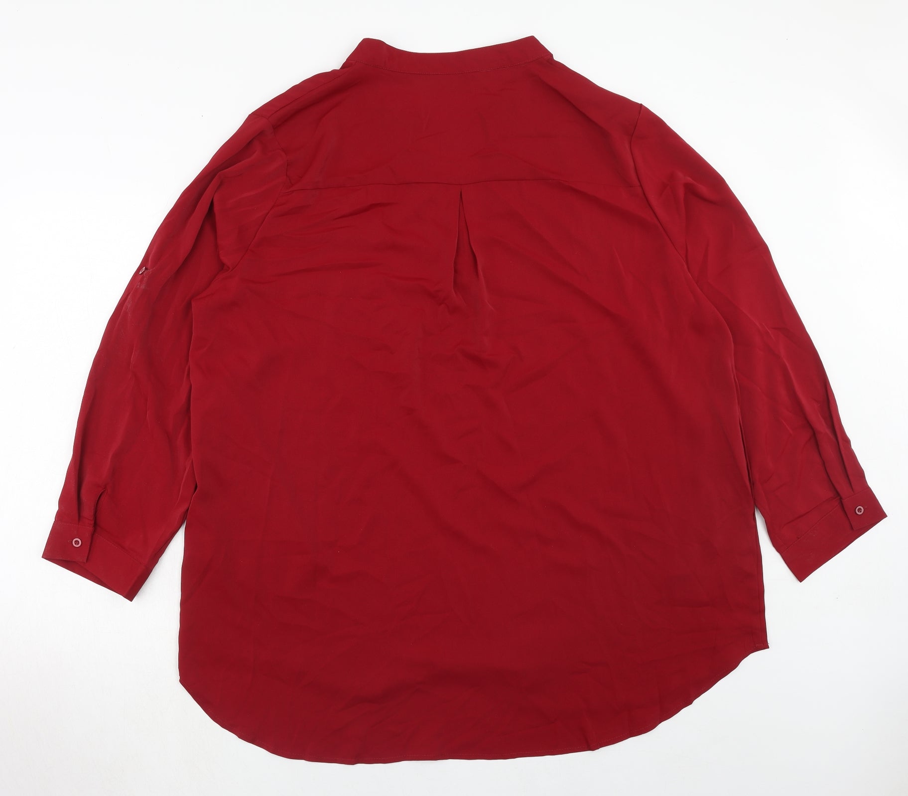 Womens Red Polyester Basic Blouse Size 2XL V-Neck