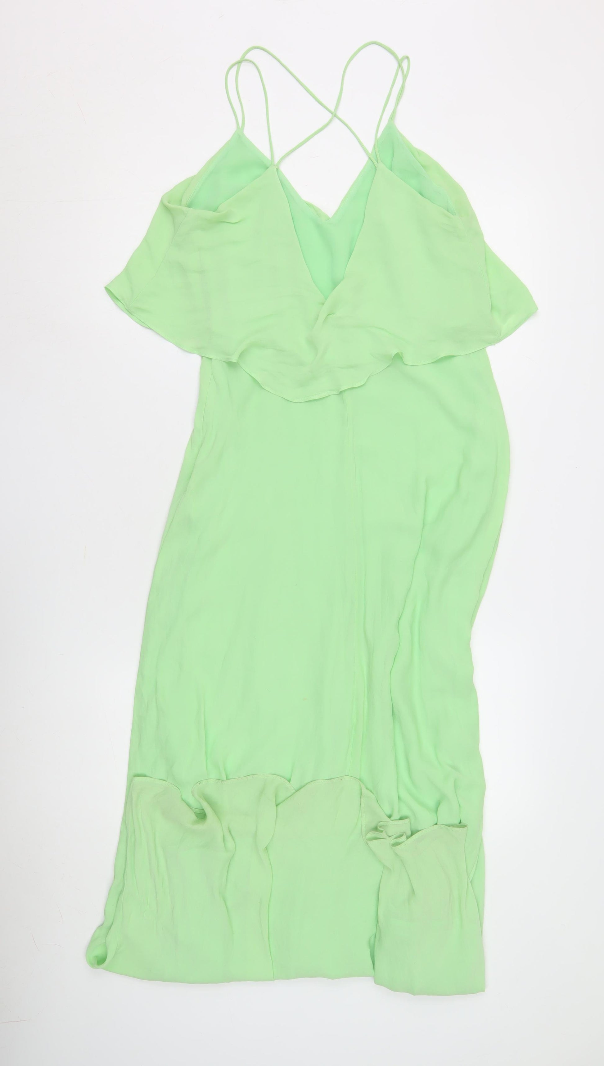 Embrace effortless elegance with this Zara Basic Women’s Slip Dress, perfect for adding a dash of charm to your wardrobe. Crafted in a refreshing green hue, this midi-length dress embodies simplicity and sophistication. Its sleek strappy design with a flattering V-neckline offers a breezy, chic look ideal for various occasions. The lightweight material ensures comfort, making it an excellent choice for both casual outings and evening affairs. Accentuated with delicate ruffles, this slip dress enhances your silhouette with a touch of femininity. The sleeveless, strappy sleeve style enhances movement and flexibility, making it suitable for warmer seasons. Whether you’re planning a garden party or a casual day out, this dress ensures you'll step out in style. Add this versatile piece to your collection and enjoy the ease of elegance every time you wear it.