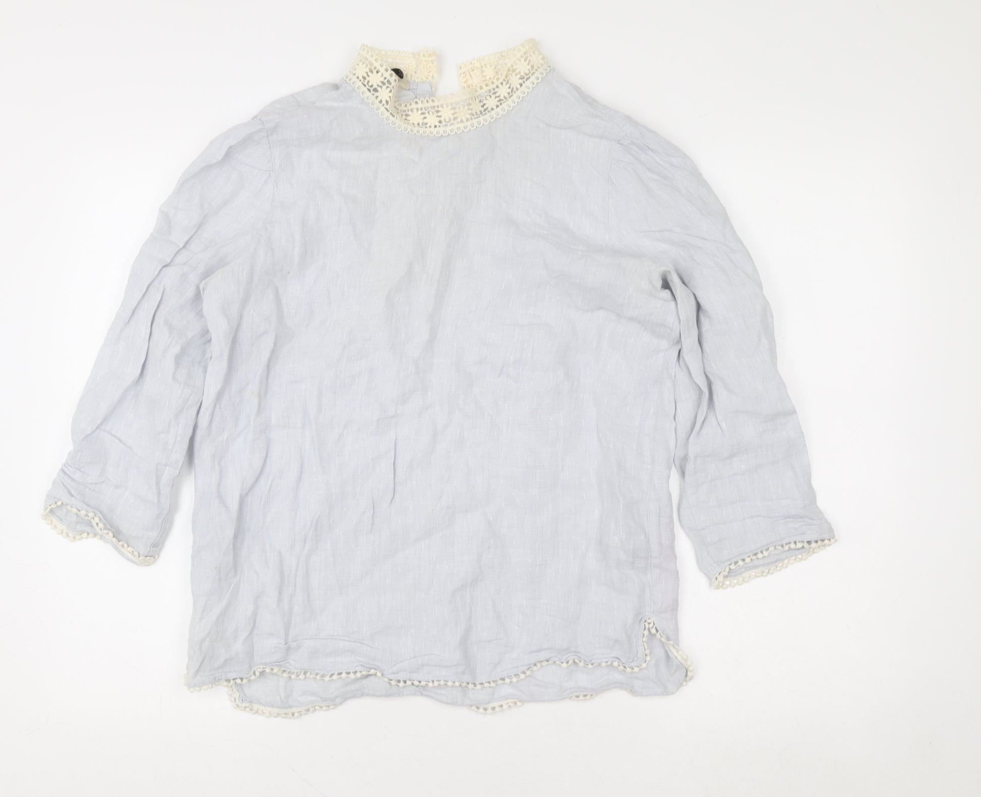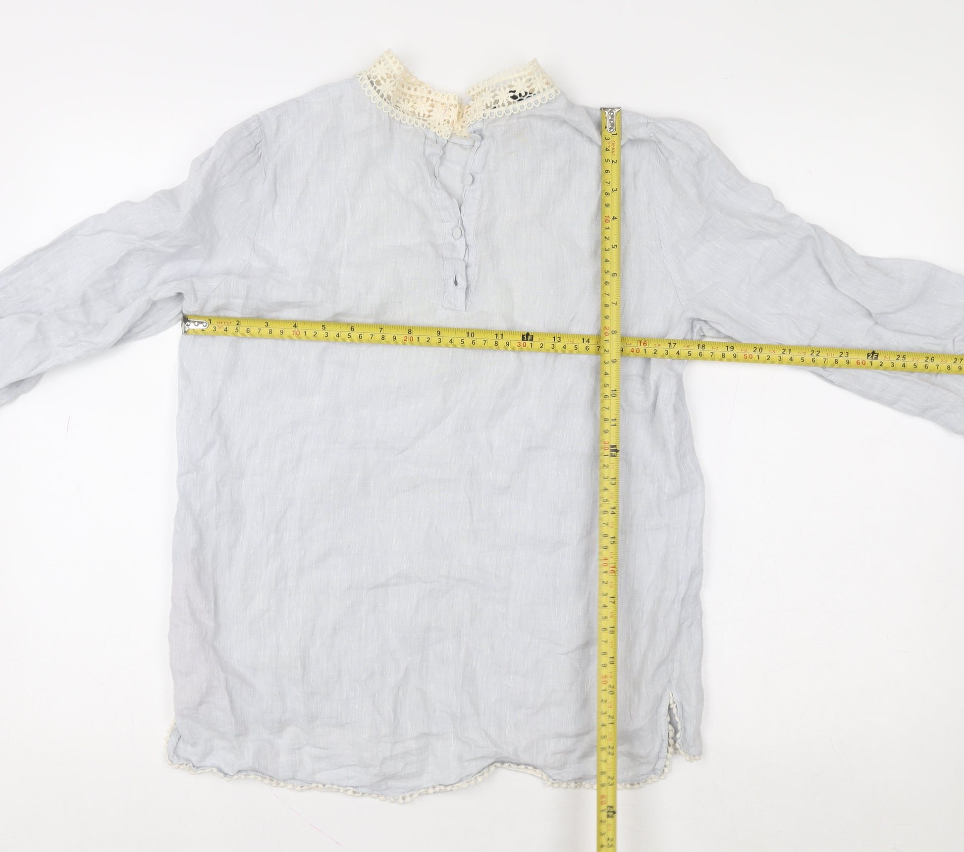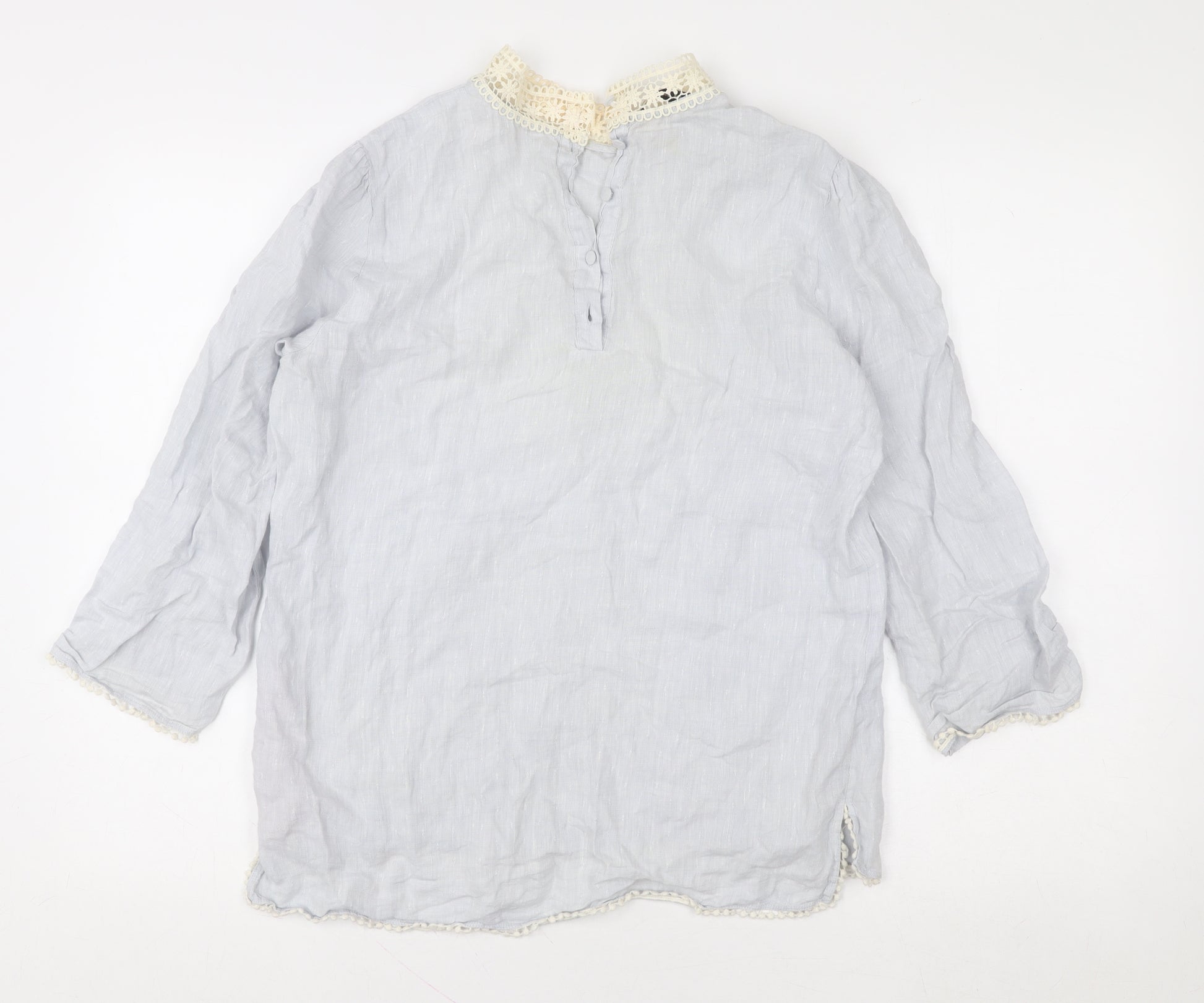 Women’s Grey Linen Crochet High Neck 3/4 Sleeve Blouse Size S
