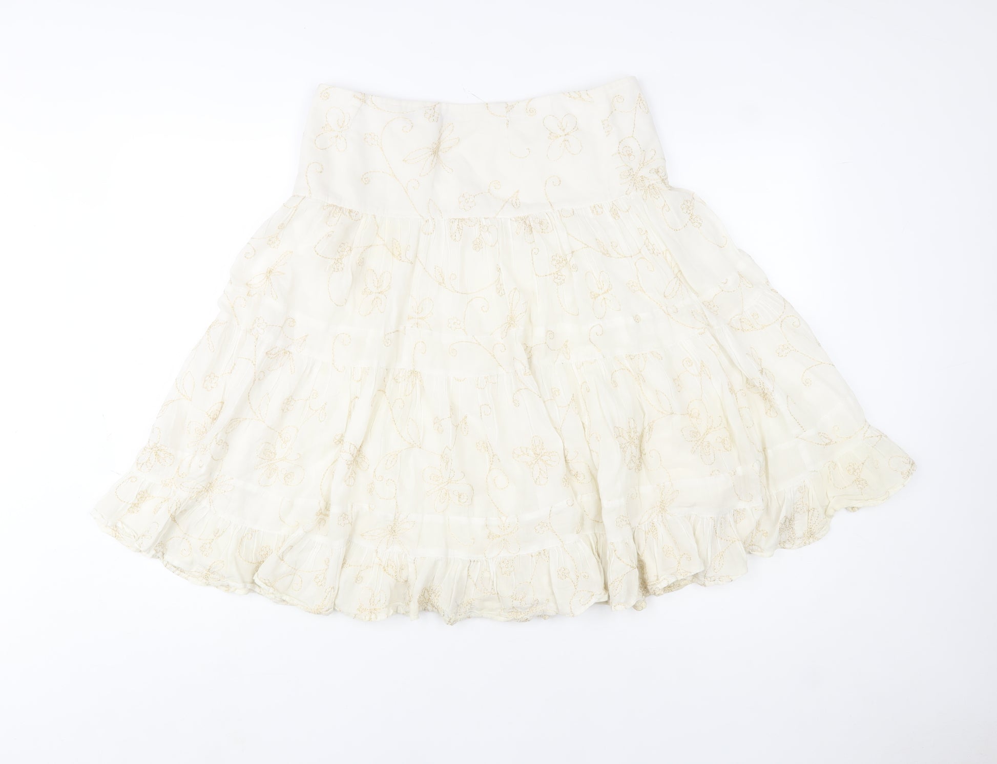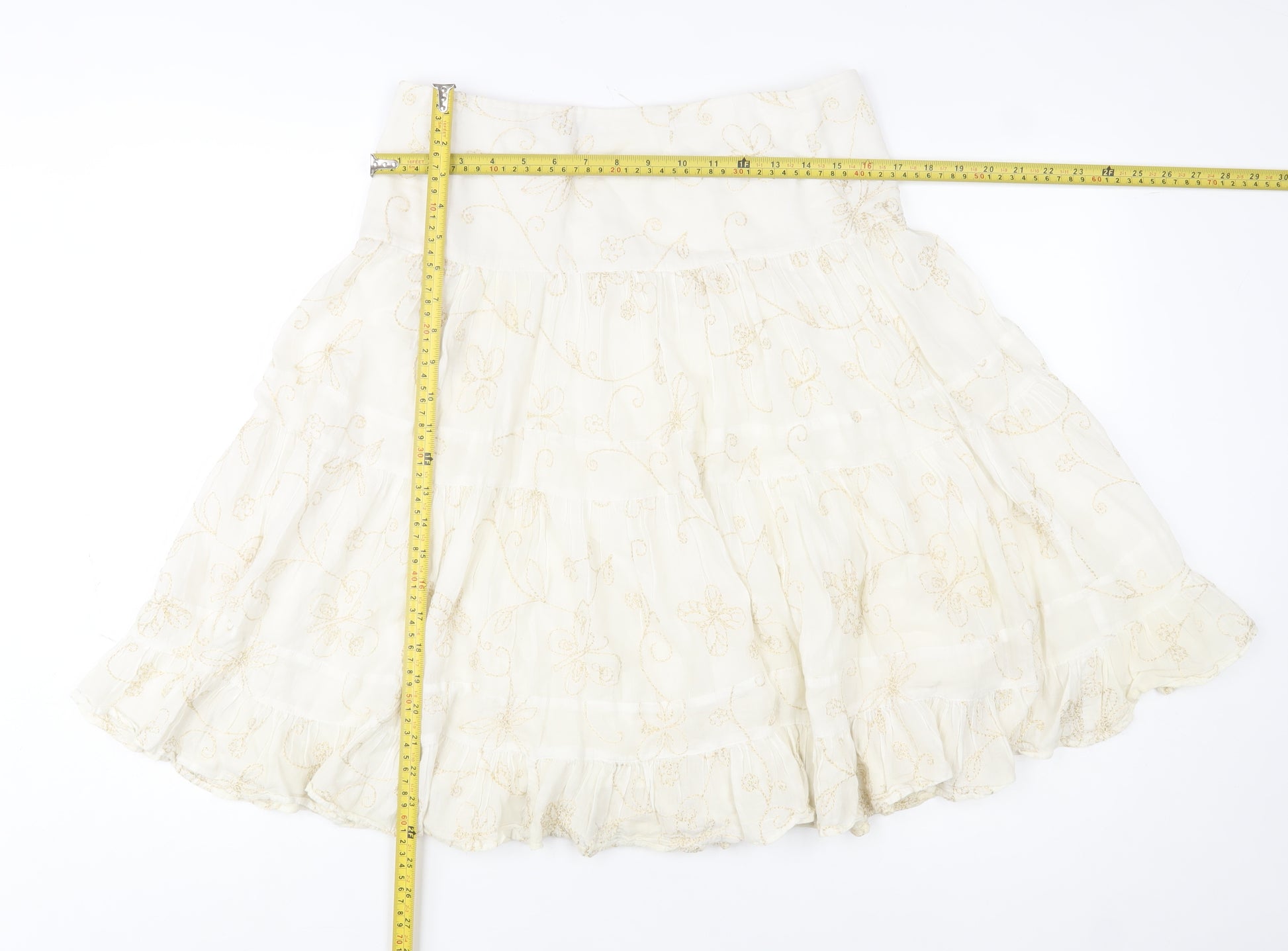 Women’s Ivory Embroidered Cotton Peasant Skirt Size 12