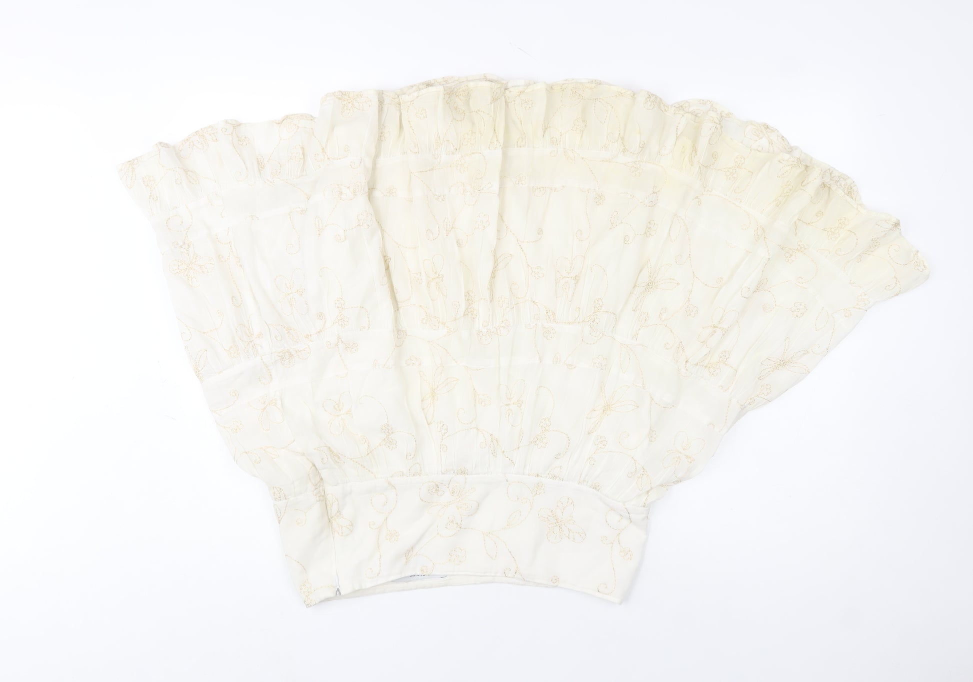 Embrace feminine elegance with this beautiful Zara Basic women’s knee-length peasant skirt. Crafted from soft, breathable 100% cotton, it offers a delicate embroidered floral design on a light ivory base, creating a timeless and effortlessly graceful look. The skirt combines subtle bohemian charm with refined construction and a flattering shape, making it versatile for both relaxed and dressed-up occasions. The flowy silhouette and airy fabric ensure day-long comfort, while the intricate gold-toned thread embroidery adds a touch of sophistication. Its lightweight, fully lined design ensures modesty and comfort. Perfect for spring and summer wear, this skirt can be styled with a simple white blouse and sandals for a day out, or paired with a tailored top and wedges for a casual evening look. The side zip closure provides a clean, smooth finish at the waist. The soft cotton fabric is easy to care for, offering durability and lasting appeal. Whether worn for casual weekend outings, holidays by the coast, or garden gatherings, this Zara Basic skirt elevates your wardrobe with easy elegance and effortlessness. In excellent pre-loved condition with no visible damage or major signs of wear, it has been well maintained and remains in lovely shape. A wonderful choice for those who appreciate feminine style with subtle bohemian flair. Enjoy this versatile skirt that balances comfort, quality, and understated sophistication. Add it to your collection for a timeless wardrobe staple that will complement numerous looks and occasions throughout the warmer months.