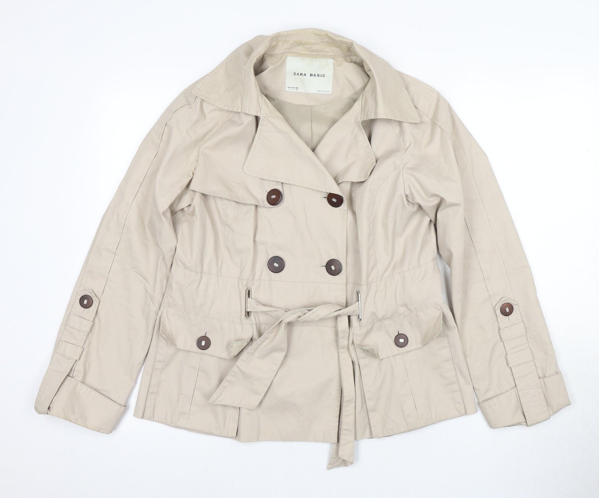 Step into timeless elegance with this Zara Basic Women's Trench Coat in a stunning beige hue. Designed for the modern woman, this coat combines classic style with versatile functionality. Crafted from 100% cotton, it presents a lightweight yet durable fabric that's perfect for spring and autumn months. Its regular fit ensures comfort, while the double-breasted button design adds sophistication to any outfit. Featuring a collared neckline and belted waist, this trench coat accentuates your figure, offering a chic silhouette. The polyester lining provides a smooth fit, making it easy to layer over your favourite ensembles. Ideal for casual outings or travel, this coat pairs effortlessly with jeans or dress trousers. Despite being pre-loved, it remains in very good condition with minor wear, and its machine washable fabric guarantees easy maintenance. Priced at £15.00, this coat promises both style and practicality without breaking the bank. Embrace the classic theme and elevate your wardrobe with this must-have piece.