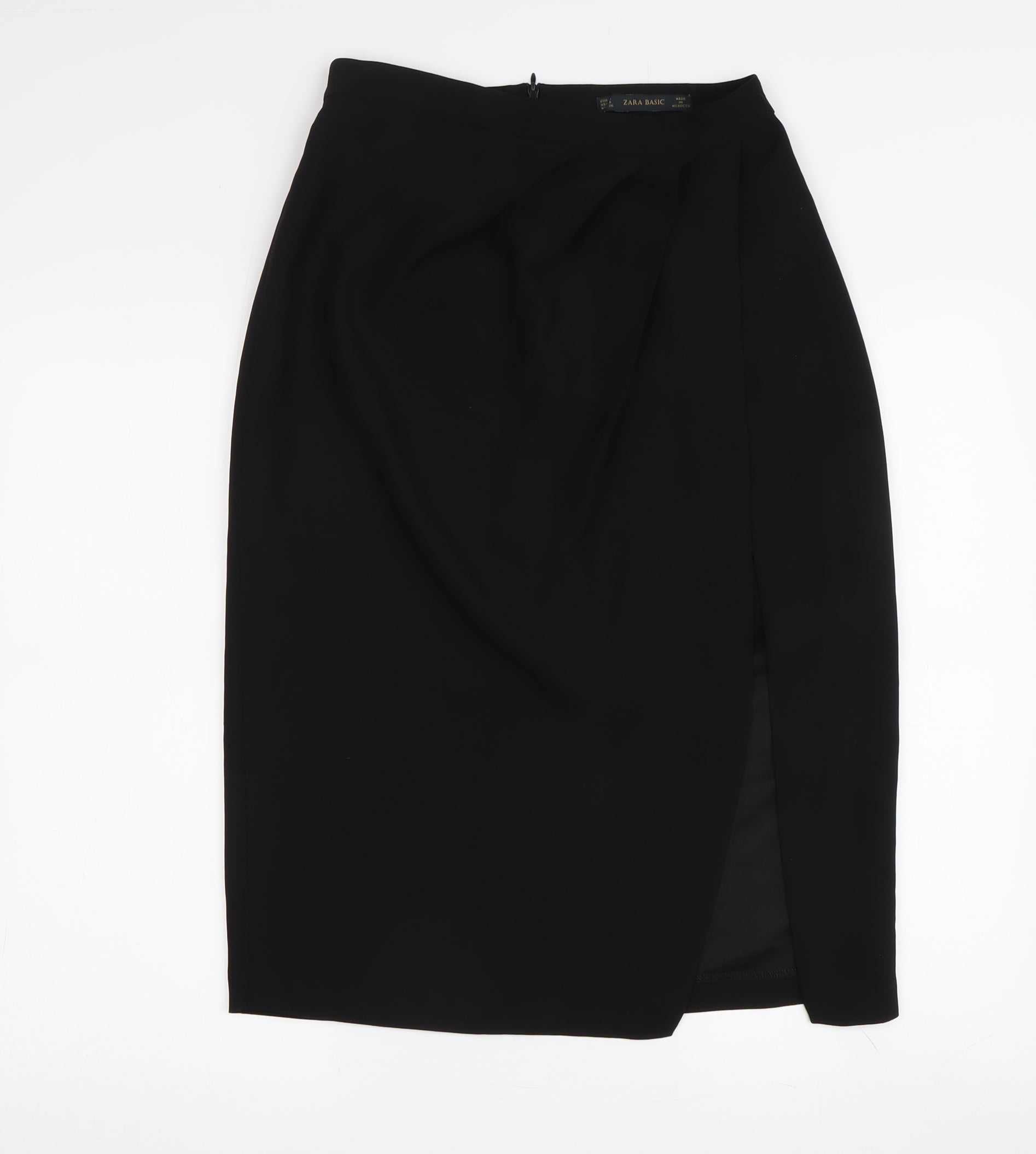 Elevate your wardrobe with the timeless elegance of this Zara Basic Women's Black Pencil Skirt. Perfectly tailored to flatter your figure, this midi-length skirt is ideal for both professional settings and evening outings. Crafted from high-quality polyester, it offers a sleek, smooth finish that enhances its sophisticated silhouette. The classic black colour makes it a versatile piece, seamlessly integrating into various styles and occasions. A high-rise waistline adds a modern touch while ensuring a comfortable fit. This skirt features a practical zip closure, providing ease of wear without compromising style. In excellent condition, it shows no visible signs of wear, making it a reliable addition to your collection. Easy to maintain, it's machine washable, offering convenience alongside its chic appeal. Whether paired with a crisp blouse for the office or a stylish top for a night out, this skirt promises to deliver refined elegance every time you wear it.