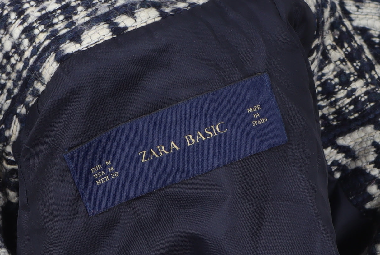 Add timeless sophistication to your outerwear with this stunning Zara Basic women’s wool blend coat. Crafted from a warm mix of wool and acrylic, this mid-length coat offers both comfort and elegance, making it ideal for the colder months of autumn and winter. The striking black and white houndstooth pattern gives it a classic yet modern appearance, while the tailored overcoat style creates a refined silhouette suitable for casual outings or smart workwear looks. Designed with practicality and style in mind, it features front pockets perfect for keeping your hands warm or storing small necessities, a single-breasted front with button closure, and a crisp notched collar that enhances its timeless appeal. The coat is fully lined in smooth polyester for added comfort and structure, ensuring it drapes beautifully over any outfit. Its mid-length cut makes it versatile enough to pair effortlessly with jeans, office attire, or an evening dress. The regular fit offers ease of movement without compromising on shape. This Zara Basic jacket exemplifies understated elegance with a contemporary twist, making it an essential addition to any wardrobe. In excellent pre-owned condition with only minimal signs of light wear, this coat retains its original quality and charm. Zara’s reputation for merging chic design with everyday practicality is perfectly embodied in this piece. Ideal for both city walks and formal occasions, it’s a reliable choice that elevates any ensemble. Whether you’re heading to work, meeting friends, or going out for a special event, this coat will keep you looking effortlessly polished. A luxurious staple every woman needs for seasonal transitions and chilly days.