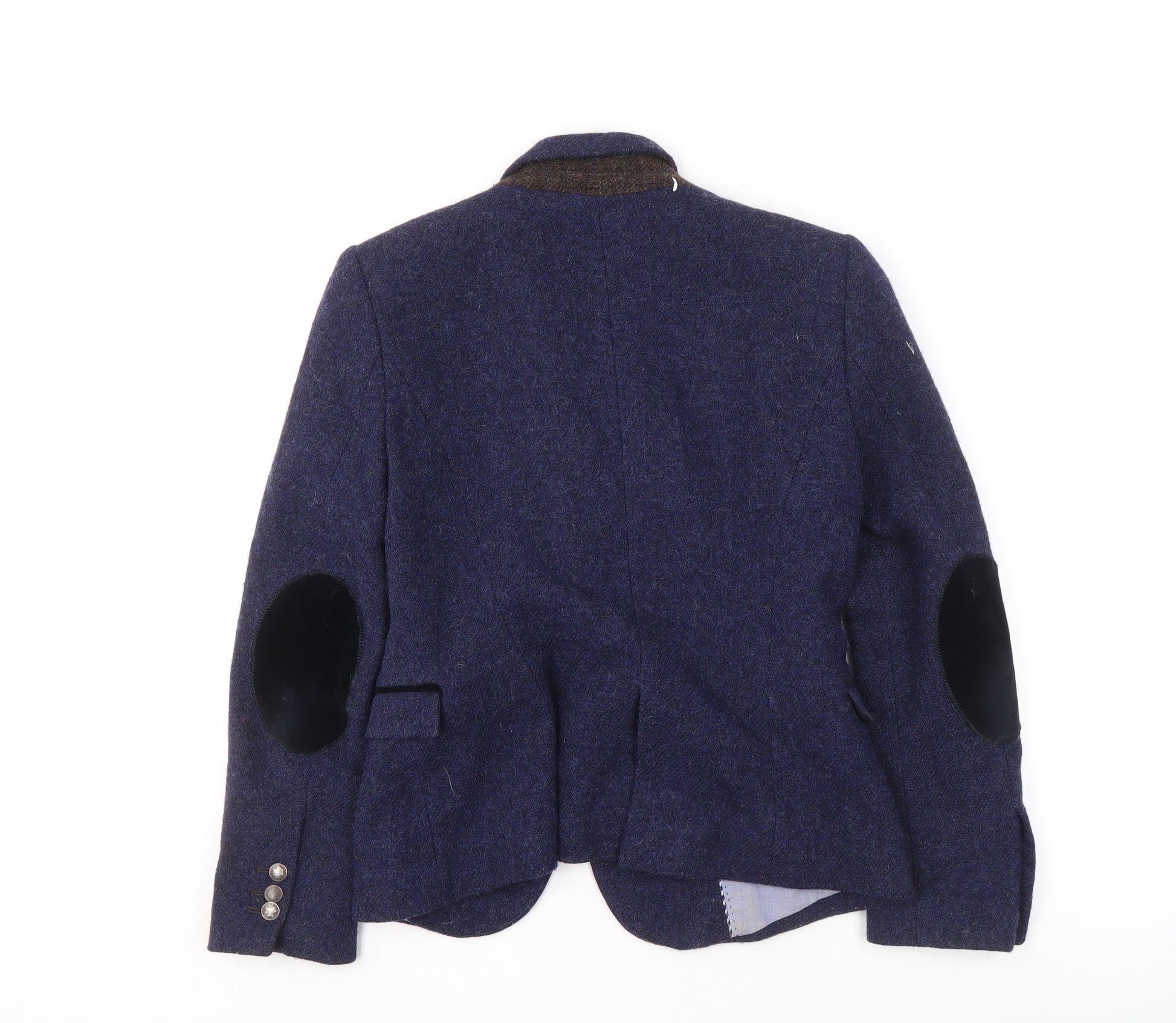 Elevate your wardrobe with this timeless Zara Basic blue blazer, perfect for the stylish woman seeking sophistication and elegance. Crafted from 100% wool, this tweed suit jacket offers a warm and durable option ideal for the autumn and winter seasons. The classic notch lapel adds a refined touch, while the single-breasted cut ensures a sleek silhouette for both business and casual occasions.This blazer features a lined interior composed of polyester, cotton, and acetate, providing comfort without compromising style. With its regular length and classic fit, it pairs exceptionally well with both trousers and skirts, making it a flexible addition to your workwear collection.The blazer's two-button front and sleeve detailing enhance its professional appeal, offering a polished look suitable for various settings, from the office to a night out. Despite minor signs of wear, this jacket is in excellent condition, ensuring you maintain a chic appearance wherever you go.Complement your outfit with this versatile Zara blazer, designed to be both functional and fashionable. Its rich blue hue and timeless design make it an essential piece for any wardrobe aiming to stand the test of time and trends.