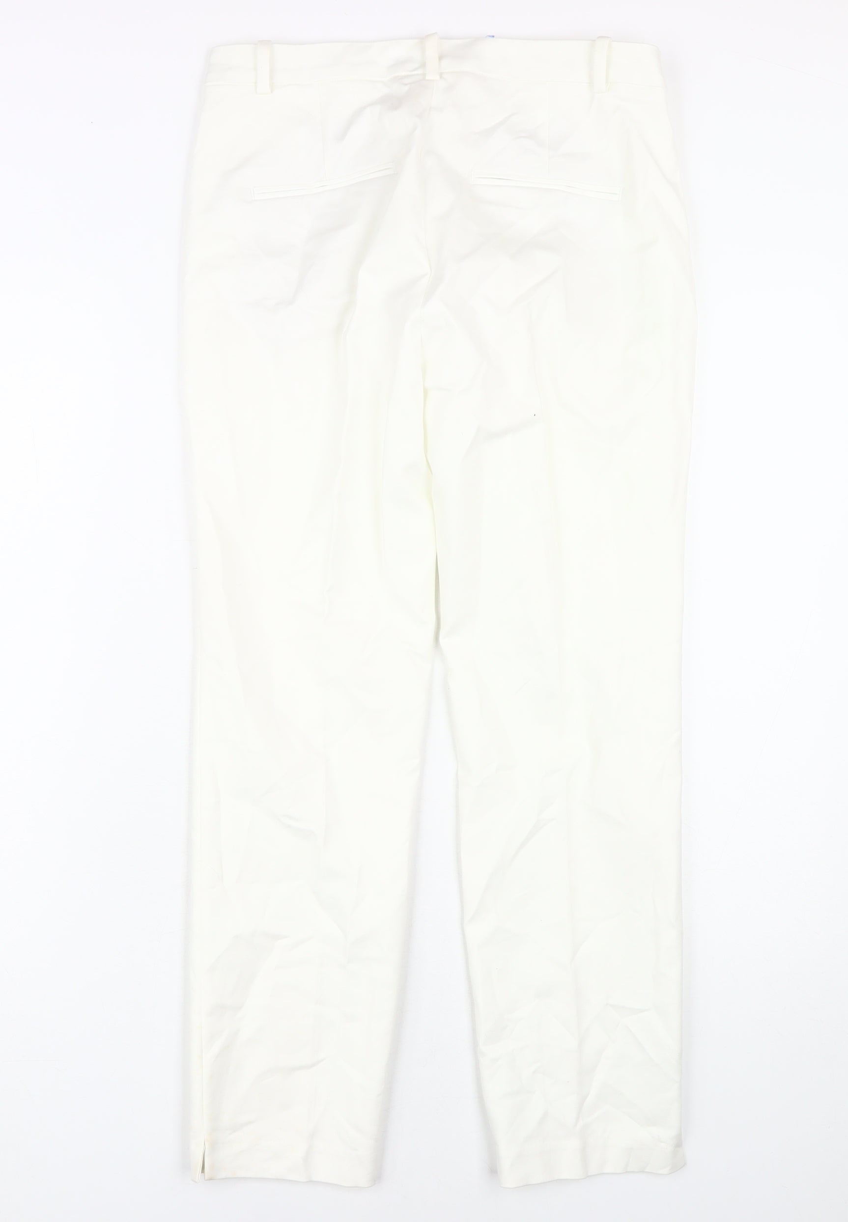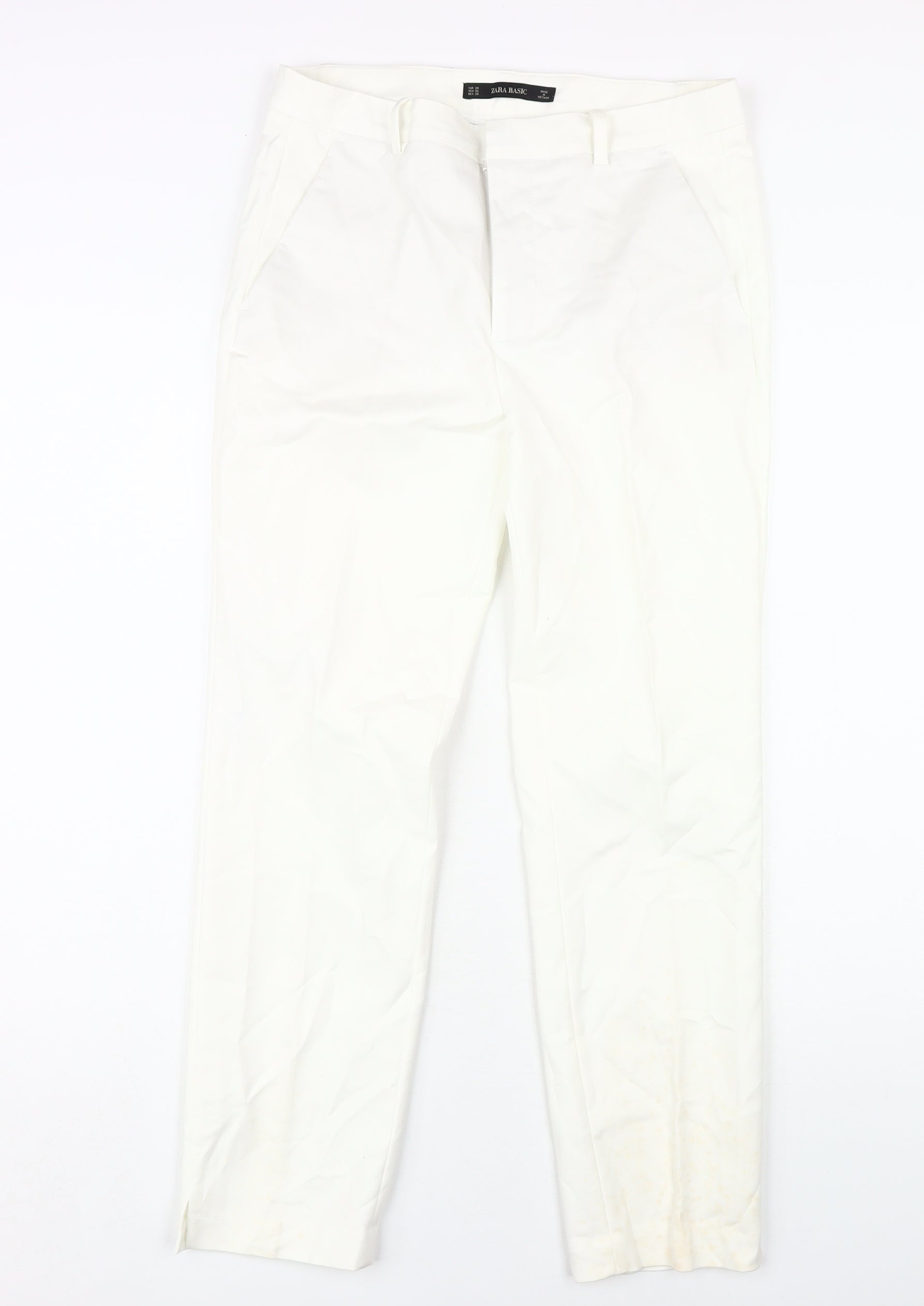 Discover elegance and simplicity with these Zara Basic Women's White Trousers, an essential addition to any wardrobe. Meticulously crafted from a soft and breathable cotton blend, these trousers offer comfort and style in equal measure. The material is composed of 97% cotton and 3% elastane, ensuring a slight stretch for easy movement while maintaining a tailored look. Cut in a classic straight leg style, they are perfect for a polished yet relaxed ensemble.Whether you're assembling an outfit for work or heading out for a casual day with friends, these trousers will adapt seamlessly to any occasion. The timeless white colour provides versatility, easily pairing with various tops and accessories to create countless stylish combinations. Designed for the modern woman, the mid-rise and flat front offer a flattering fit that complements different body shapes, ensuring you feel confident and chic throughout the day.Functionality meets fashion with practical features such as pockets and a minimalist design, allowing them to be dressed up or down according to the occasion. Although previously owned, these trousers remain in very good condition, showing only light creasing, which adds to their character without detracting from their appeal. Their machine-washable nature means upkeep is simple, keeping them a staple in your outfit rotation. At this affordable price, these Zara Basic trousers are a smart investment in style and comfort, ready to accompany you through any season or occasion.