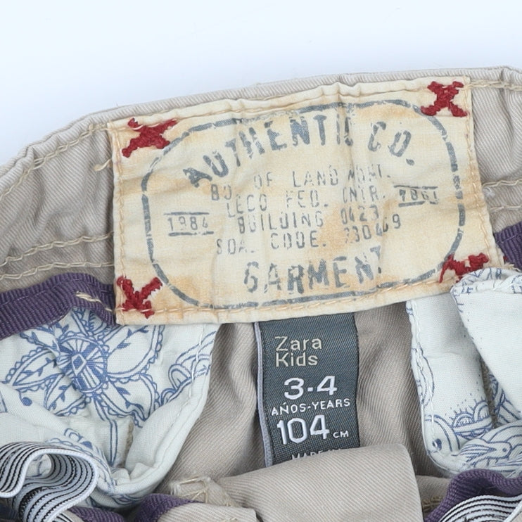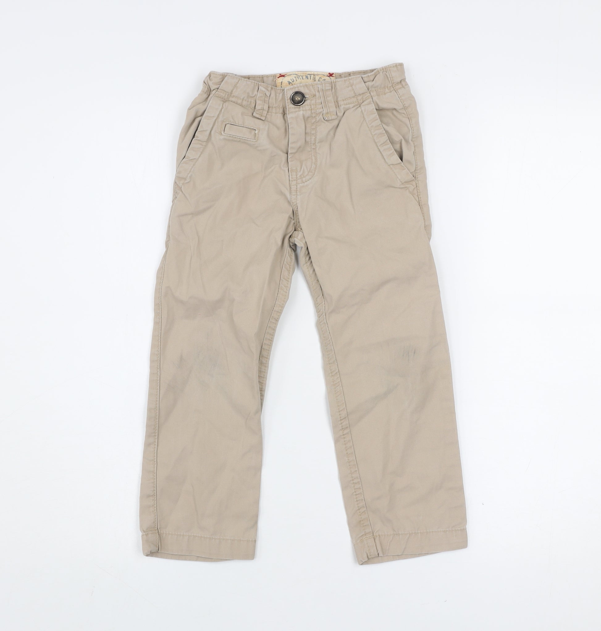 Boys Beige Chino Trousers 3-4 Years Adjustable Waist Cotton
