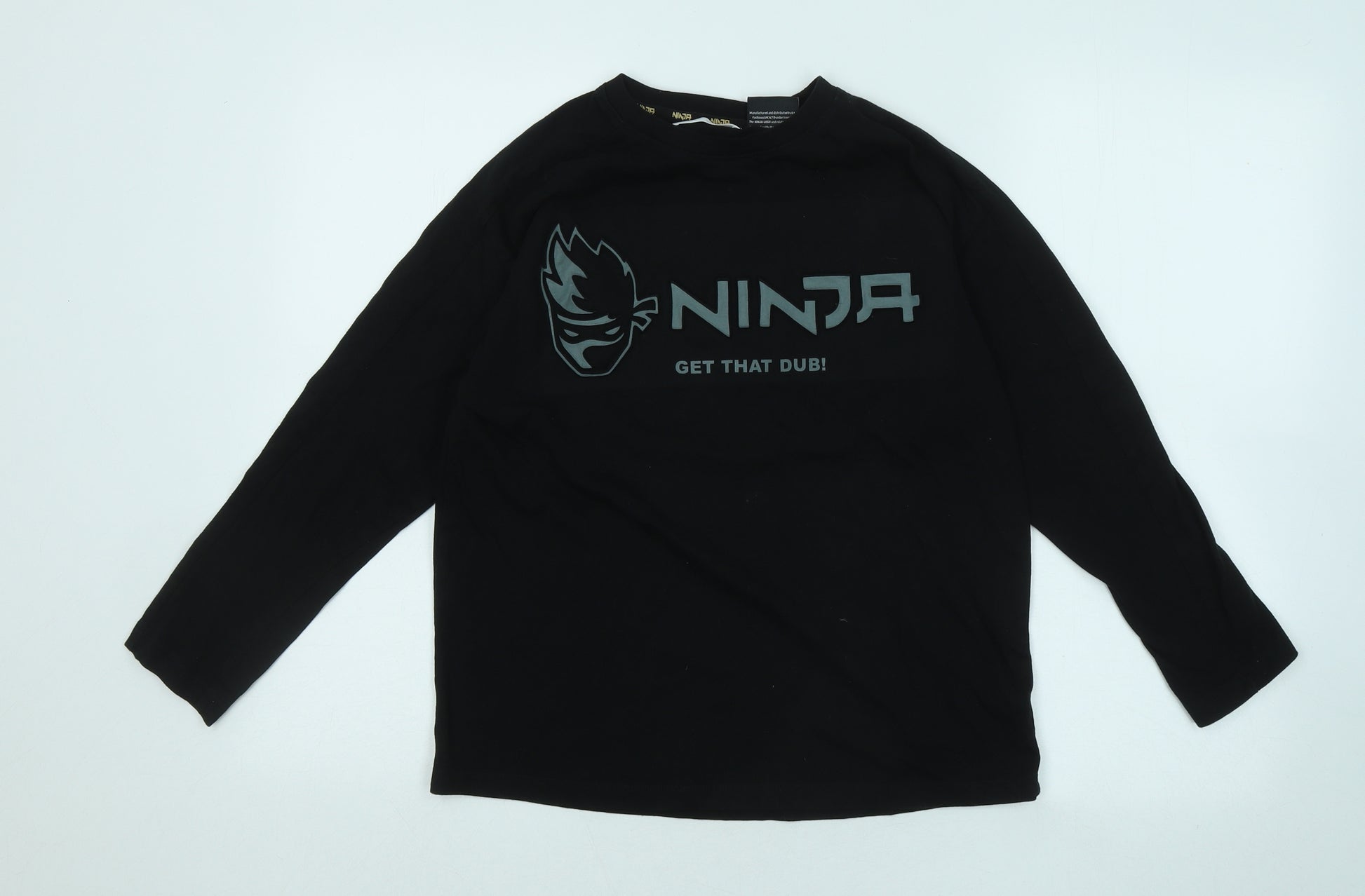 Boys Black Cotton Basic T-Shirt Size 11-12 Years Round Neck - Ninja Get That Dub!