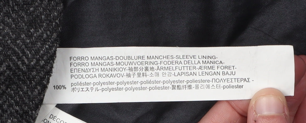 Introducing a classic Zara Boys black suit jacket, perfect for both formal and casual occasions. Crafted from a luxurious blend of 70% polyester and 30% wool, this jacket boasts a timeless herringbone pattern, ensuring your little one looks sharp and stylish. Tailored with a regular fit and a single-breasted cut, it features a notch lapel and two-button front, making it both comfortable and chic. Ideal for the autumn and winter seasons, it comes fully lined with polyester for added warmth and comfort. Inner pockets add practicality without compromising on style. Suitable for age 6, it's a versatile piece that pairs easily with trousers for a formal look or jeans for a casual outing. Despite its lack of original sales tags, the jacket remains in excellent condition without any visible stains or rips. Grab this elegant piece for a smart addition to your child's wardrobe today.