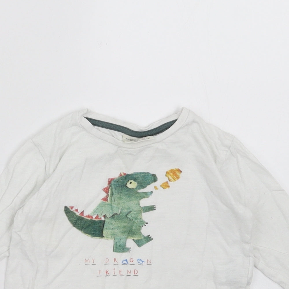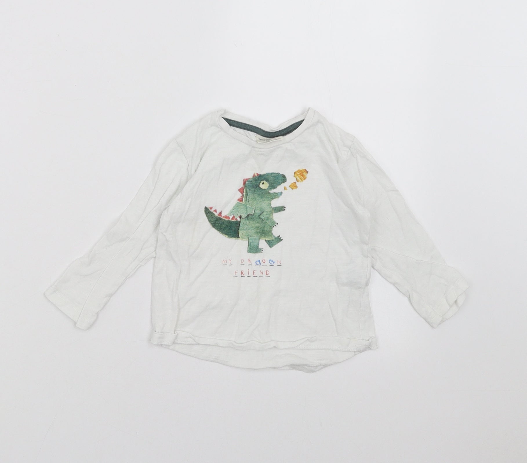 Boys White Basic T-Shirt Size 18-24 Months - DInosaur