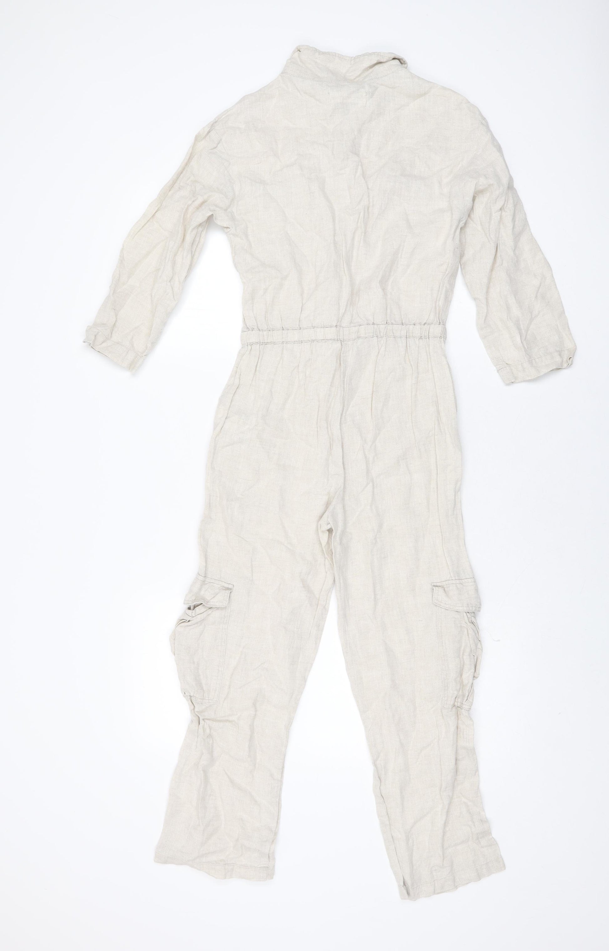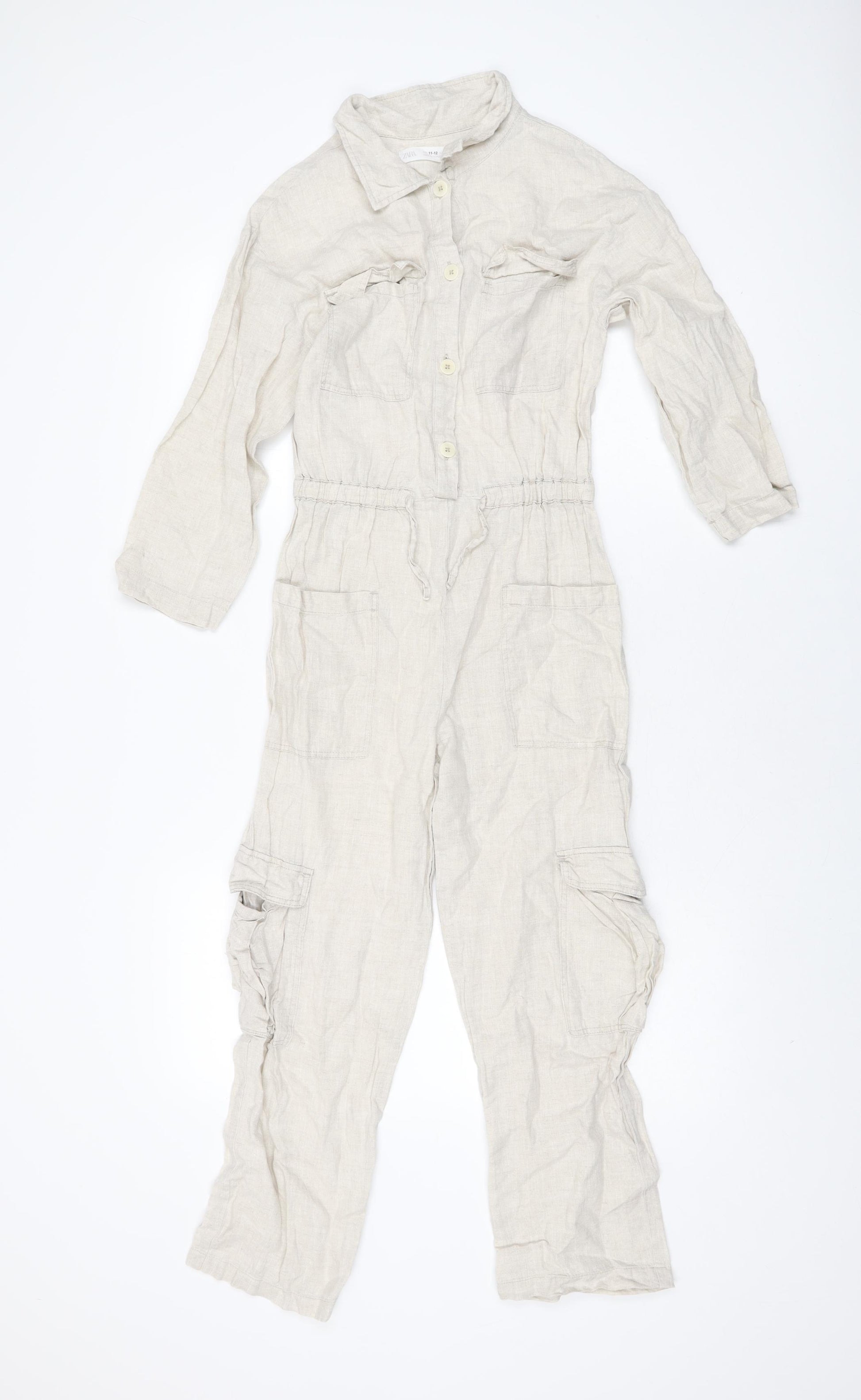 Girls Beige Linen Jumpsuit One-Piece Size 11-12 Years L23 in Button