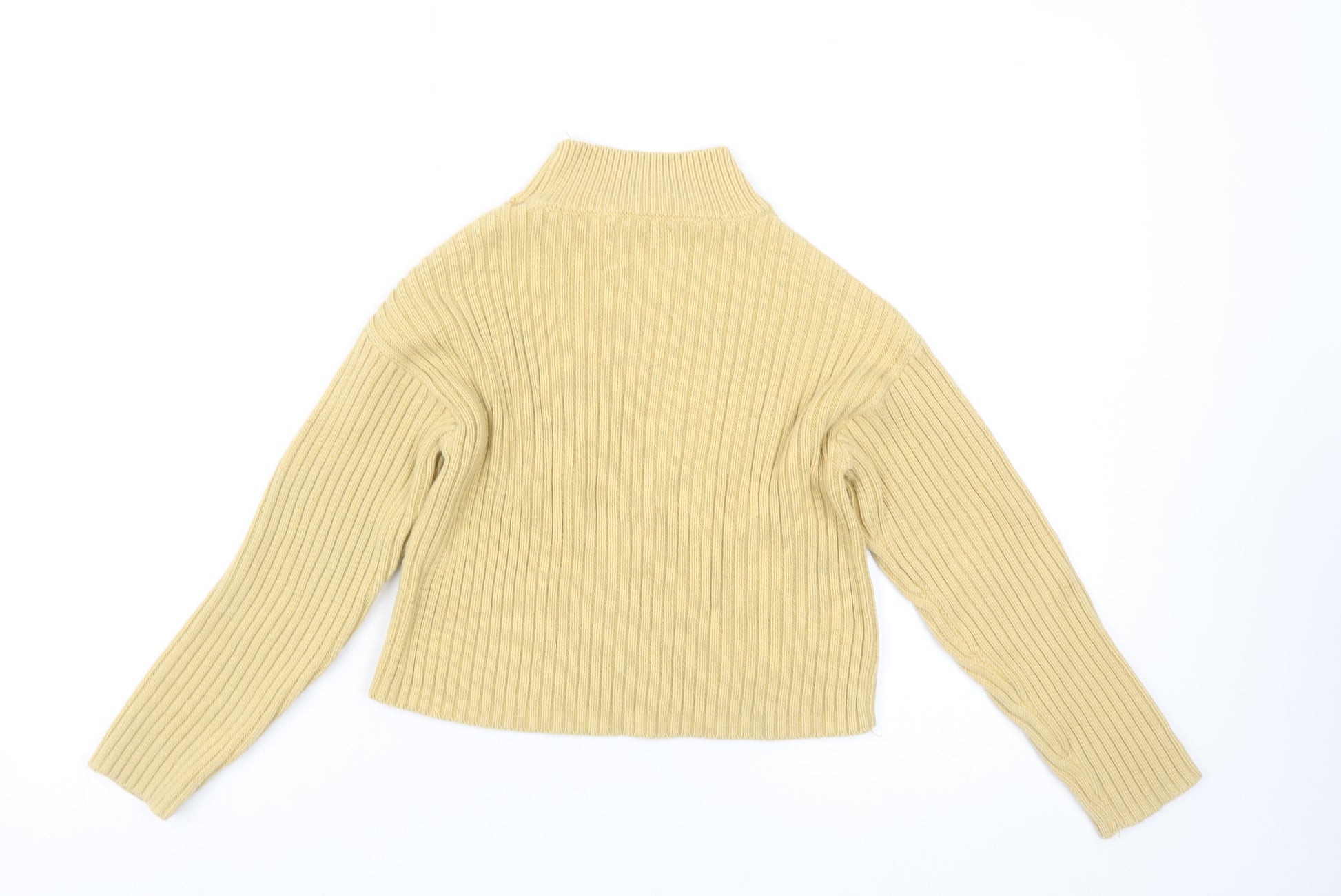 Girls Beige Ribbed Mock Neck Wool Blend Jumper Size 11-12 Years